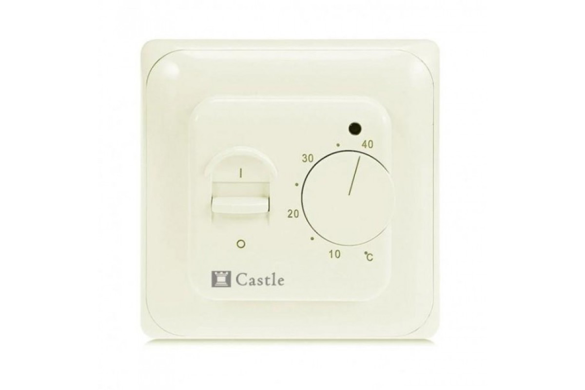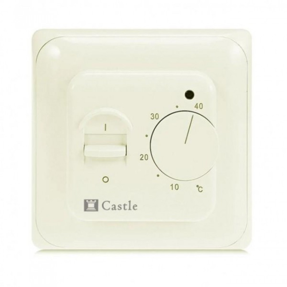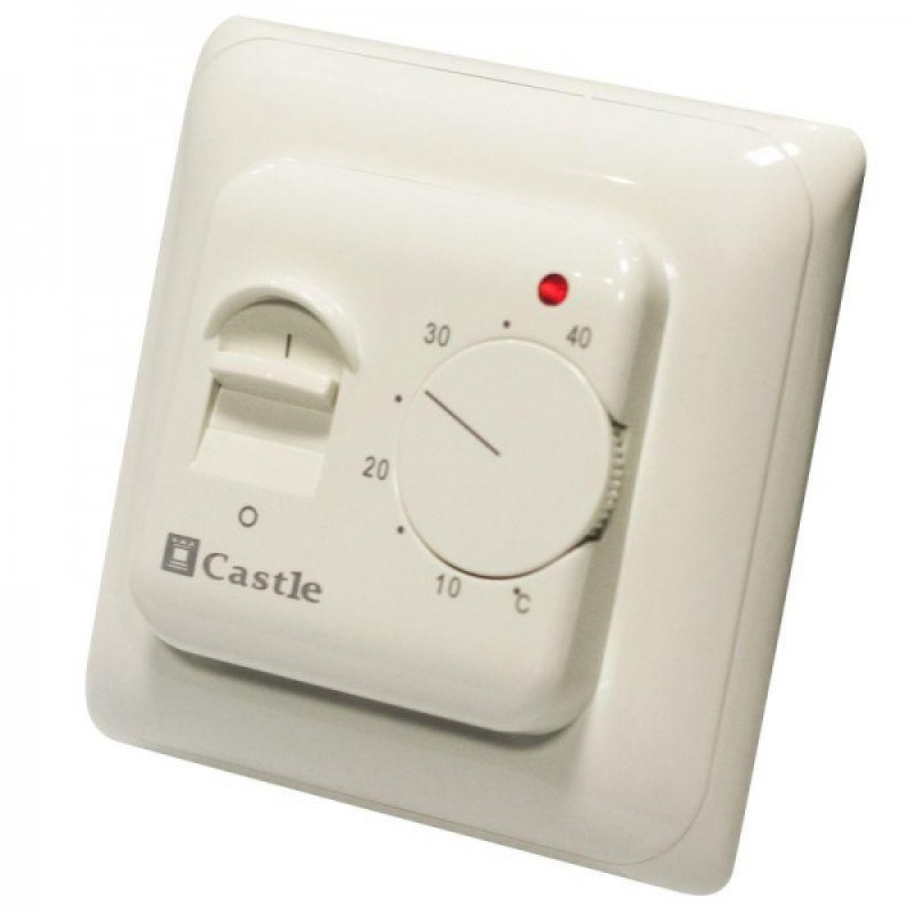 CASTLE M5.16 - механічний терморегулятор який використовується для керування електричними підлогами всіх типів: кабельними, плівковими, алюмінієвими матами і т.д. Регулятор розрахований на навантаження 2800 Вт (16 А), що еквівалентно ~15-18 м2 теплої підлоги.У комплекті з регулятором поставляється виносний температурний датчик з довжиною провода 3 метри. Номінал термодатчика – 10 кОм при 25°С.