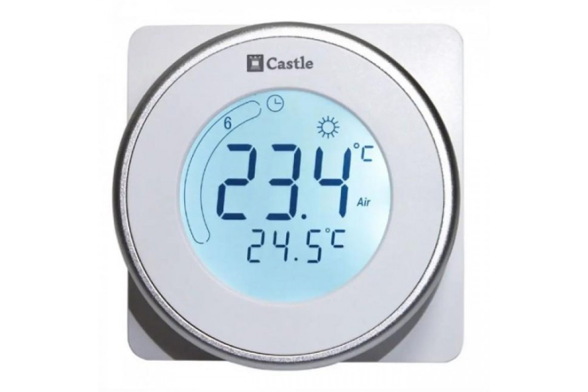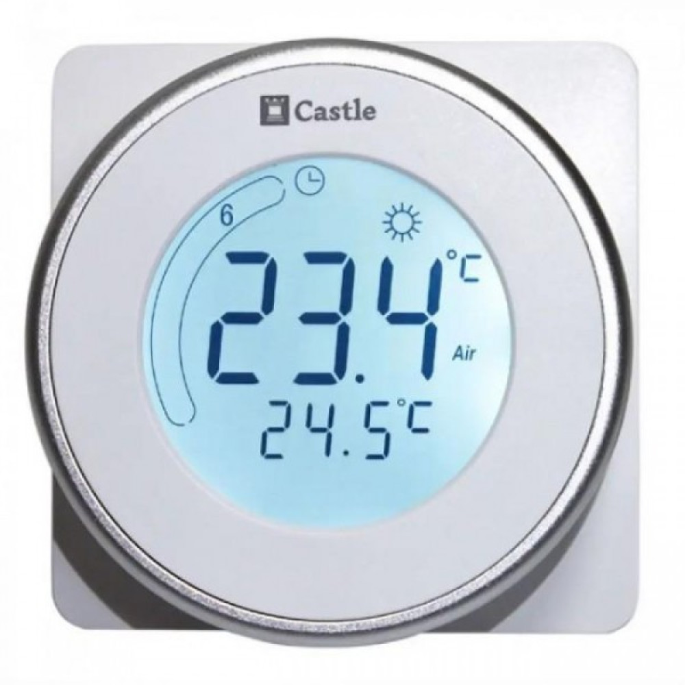 Терморегулятор програмований Castle AC605H - це програмований термостат, призначений для керування електричними підлоговими, водонагрівальними та котельними системами. Цей термостат використовується в комерційній, промисловій та побутовій нерухомості. Дизайн термостату Castle AC605H поєднується з будь-яким декором, маючи функцію сенсорного екрана з підсвічуванням, легко використовувати навіть у темряві. Вмикається та вимикається регулятор автоматично за заданою програмою. Монтується у підрозетник.
