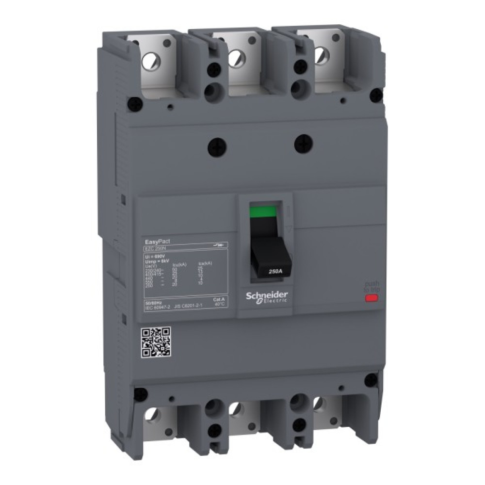 EasyPact EZC250N - це 3-полюсний фіксований автоматичний вимикач, призначений для захисту електроустановок низької напруги. Він використовується для стандартних застосувань у промисловості та будівлях, пропонуючи хорошу продуктивність за конкурентоспроможною ціною. Відключаюча здатність (Icu) становить 25 кА середньоквадратичного значення при 415 В змінного струму 50/60 Гц.