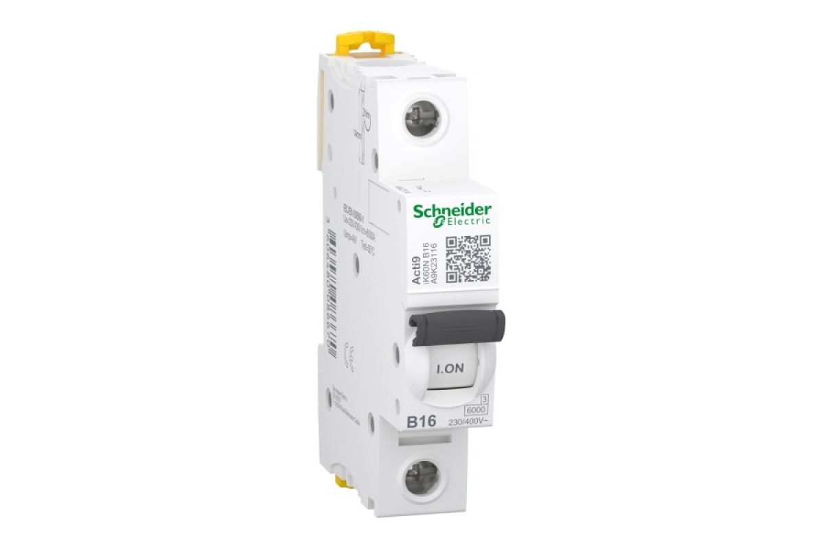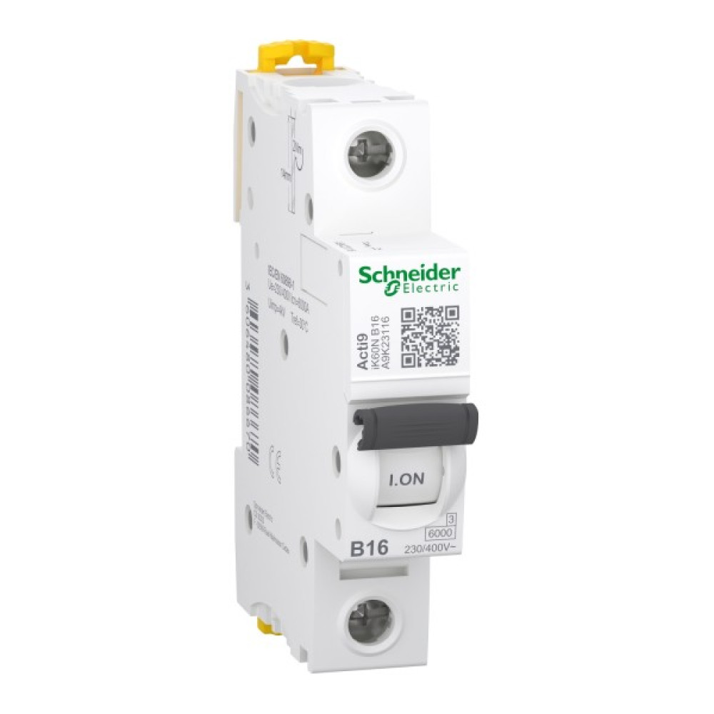 Acti9 iK60N є низьковольтним модульним автоматичним вимикачем (АВ). Це автоматичний вимикач 1P з 1 захищеним полюсом, номінальним струмом 16A і кривою відключення B. Номінальна відключаюча здатність при короткому замиканні складає 6000 А при 230 В змінного струму відповідно до стандарту МЕК 60898-1.