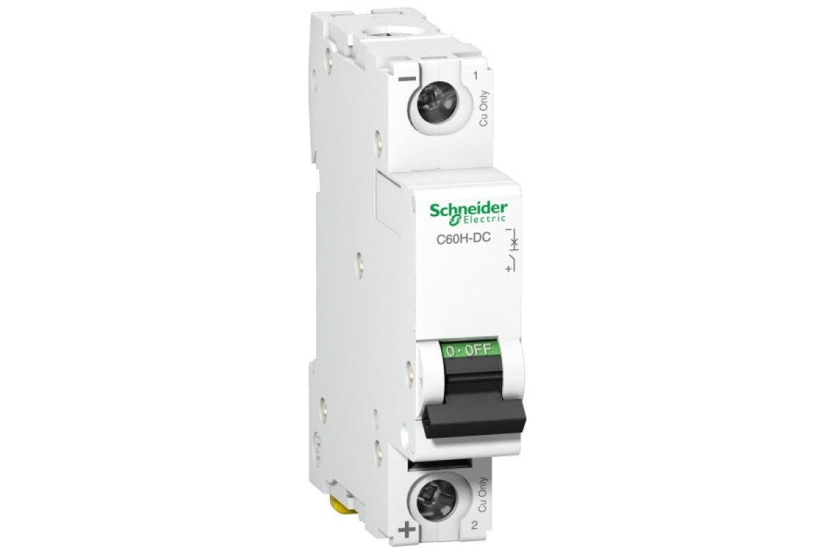 Acti9 C60H-DC це автоматичний вимикач (АВ) постійного струму низької напруги. Це однополюсний автоматичний вимикач з номінальним струмом 15A та кривою відключення C. Номінальна відключаюча здатність при короткому замиканні 10 кА при 220 В постійного струму відповідно до стандарту EN 60947-2. Автоматичний вимикач захищає електричне коло від струмів короткого замикання та перевантаження. Механічний індикатор VisiTrip сигналізує про спрацювання автоматичного вимикача, чим скорочує час виявлення проблеми та її вирішення. Зелена смужка VisiSafe гарантує фізичне розмикання контактів, що дозволяє безпечно проводити технічне обслуговування. Acti9 C60H-DC використовується в електричних колах постійного струму та призначені для промислового керування автоматизації, транспорту та відновлюваної енергетики. Він має електричну зносостійкість до 3 000 циклів і механічну зносостійкість до 20 000 циклів. Робоча напруга Ue становить 250 В постійного струму.