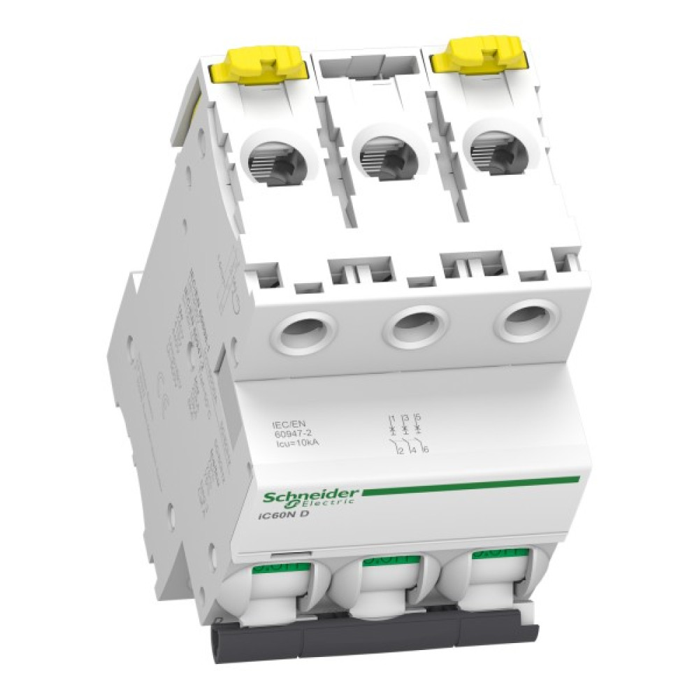 Acti9 iC60N є низьковольтним автоматичним вимикачем (АВ). Це трьохполюсний автоматичний вимикач з номінальним струмом 50 А та кривою відключення D. Номінальна відключаюча здатність при короткому замиканні 20 кА при напрузі від 220 до 240 В змінного струму відповідно до стандарту МЕК 60947-2 і 6000 А при напрузі 400 В змінного струму відповідно до стандарту МЕК 60898-1.