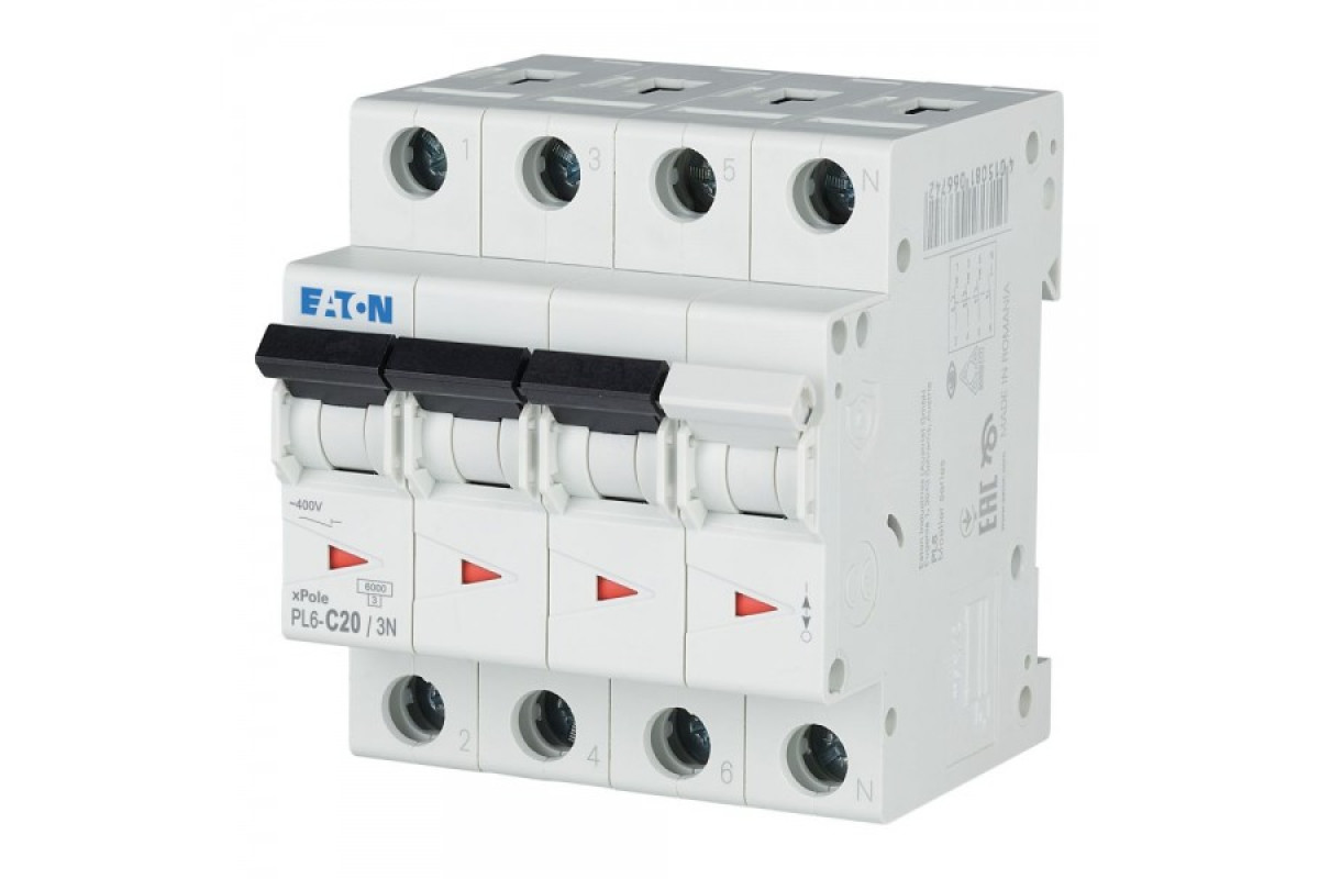 Автоматичні вимикачі PL6 Eaton (Moeller) – це електромеханічні комутаційні прилади, що служать для Автоматичне роз'єднання ланцюга від мережі живлення при перевищенні струму певної максимальної величини і виникненні струмів короткого замикання, а також для з'єднання ланцюга з мережею живлення або її роз'єднання вручну.Безпечні і універсальні, ці мініатюрні автоматичні вимикачі оснащені направляючої для безпечного підключення до висновків і сумісні зі стандартною вилочний або штирьовий шиною, яка може бути встановлена як зверху, так і знизу.