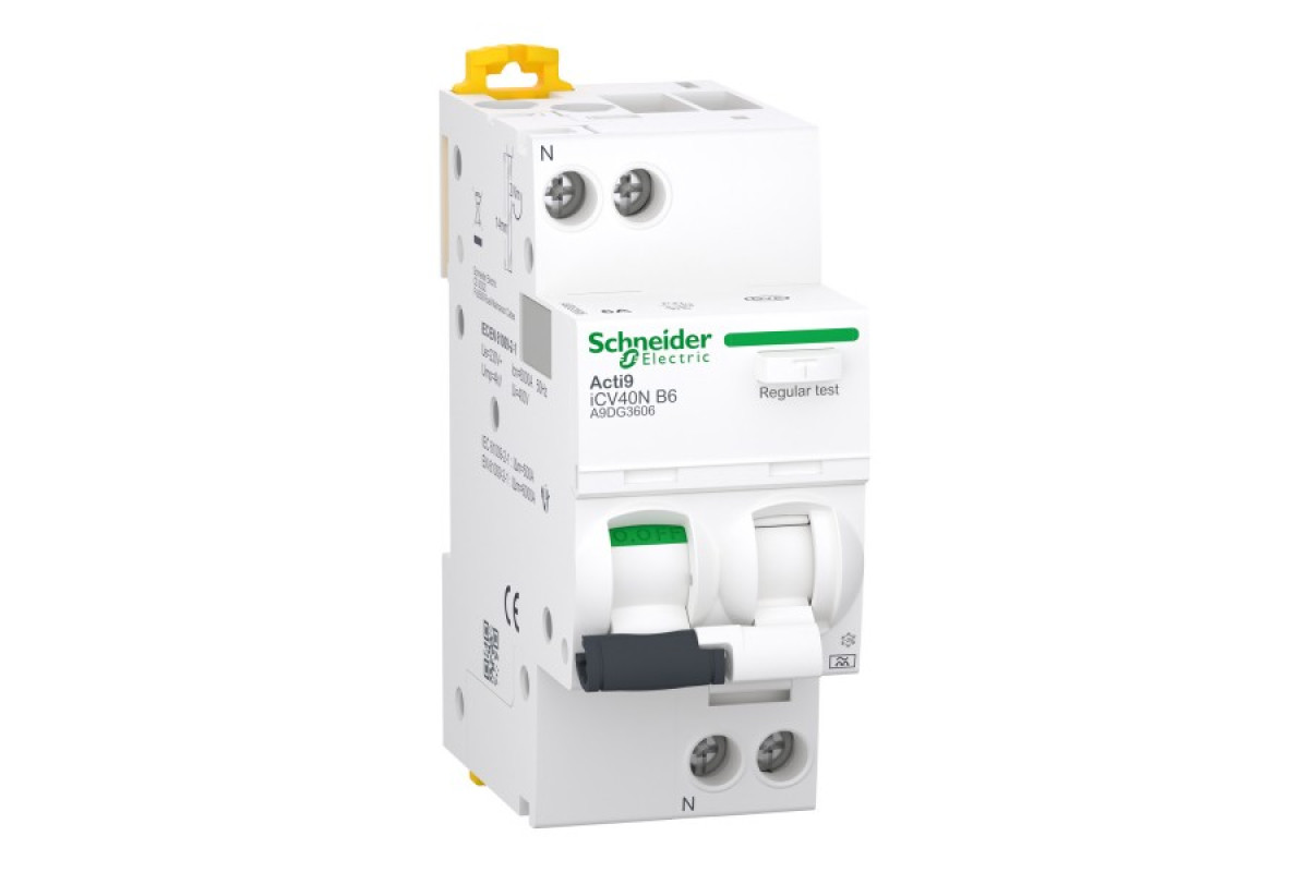 Цей продукт Acti9 iCV40 є модульним автоматичним вимикачем диференційного струму (АВДС). Це автоматичний вимикач 1P+N з 1 захищеним полюсом, номінальний струм 32 А, крива відключення C. Клас захисту від витоків струму на землю належить до типу AC з чутливістю 30 мА. Затримка часу захисту від витоків на землю є миттєвою. Номінальний струм короткого замикання Icn становить до 6000 А відповідно до стандарту EN/МЕК 61009-2-1. Цей виріб захищає від короткого замикання, перевантаження, ураження електричним струмом при непрямому контакті та пожежі. Його 2 унікальні індикатори Visitrip скорочують час втручання, показуючи несправне коло та швидко визначаючи тип несправності. Зелена смужка VisiSafe гарантує фізичне розмикання контактів для подальшого обслуговування. Цей продукт відповідає стандарту EN/МЕК 61009-2-1. Він має електричну зносостійкість - 10000 циклів і механічну зносостійкість - 20000 циклів. Номінальна робоча напруга Ue до 230 В змінного струму. Номінальна напруга ізоляції становить 400 В змінного струму. Номінальна імпульсна витримувана напруга Uimp становить 4 кВ. Частота 50/60Гц. Монтується на DIN-рейку. Ширина - 4 модулі по 9 мм. Колір продукту - білий (RAL9003). Розміри (Ш) 36мм x (В) 85мм x (D) 73мм. Вага становить 210г. Він має ступінь захисту IP20. IP40 модульній шафі відповідно до стандарту МЕК/EN 60529. Робоча температура: від -5°C до 60°C. Температура зберігання від -40°C до 85°C.