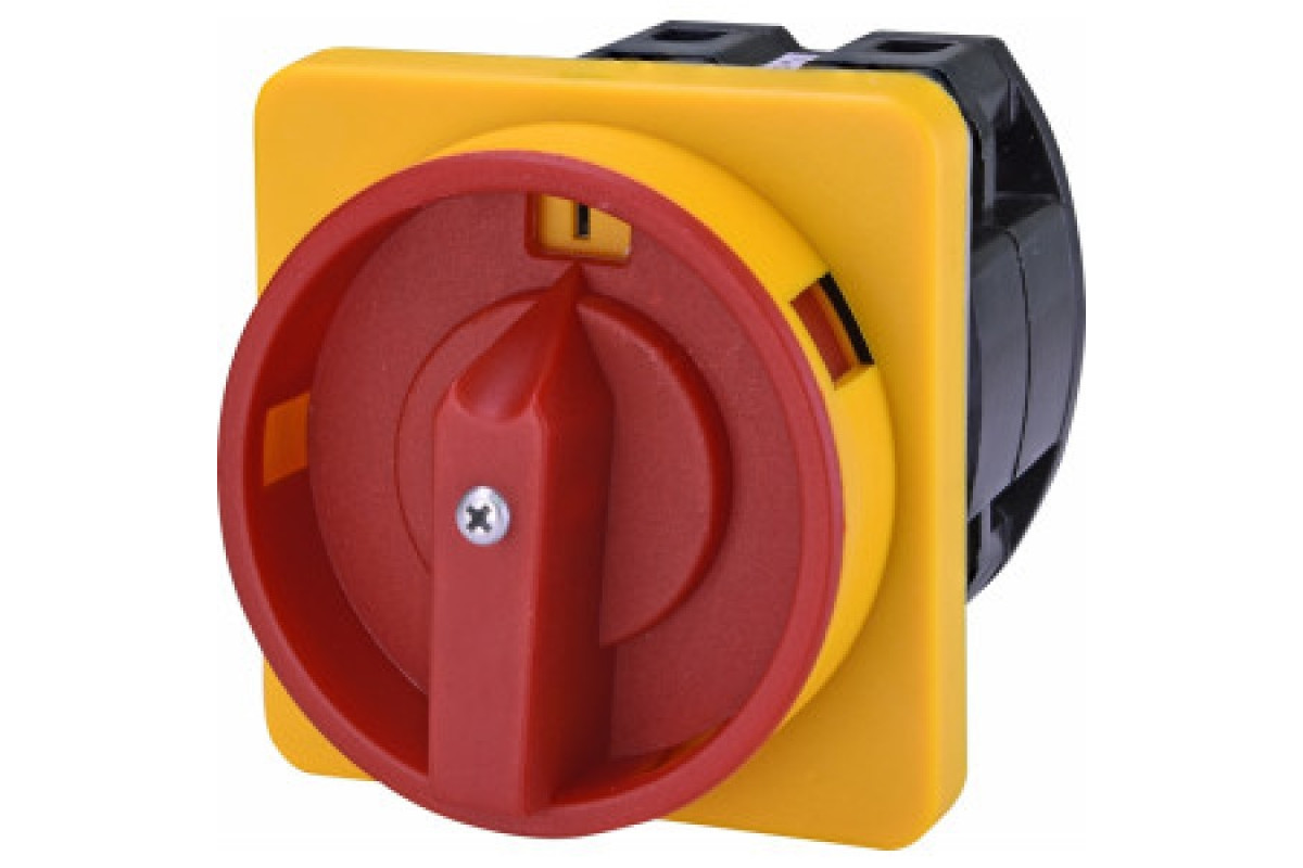 Пакетний вимикач аварійного типу CS 40 92 U LK. Встановлення на дверцята електричного щита. Струм - 40А. Чотириполюсний. Керування - поворот з можливістю блокування замком в положенні 0. Схема вимкнути - ввімкнути (0-1). Колір - Червоно-жовтий.