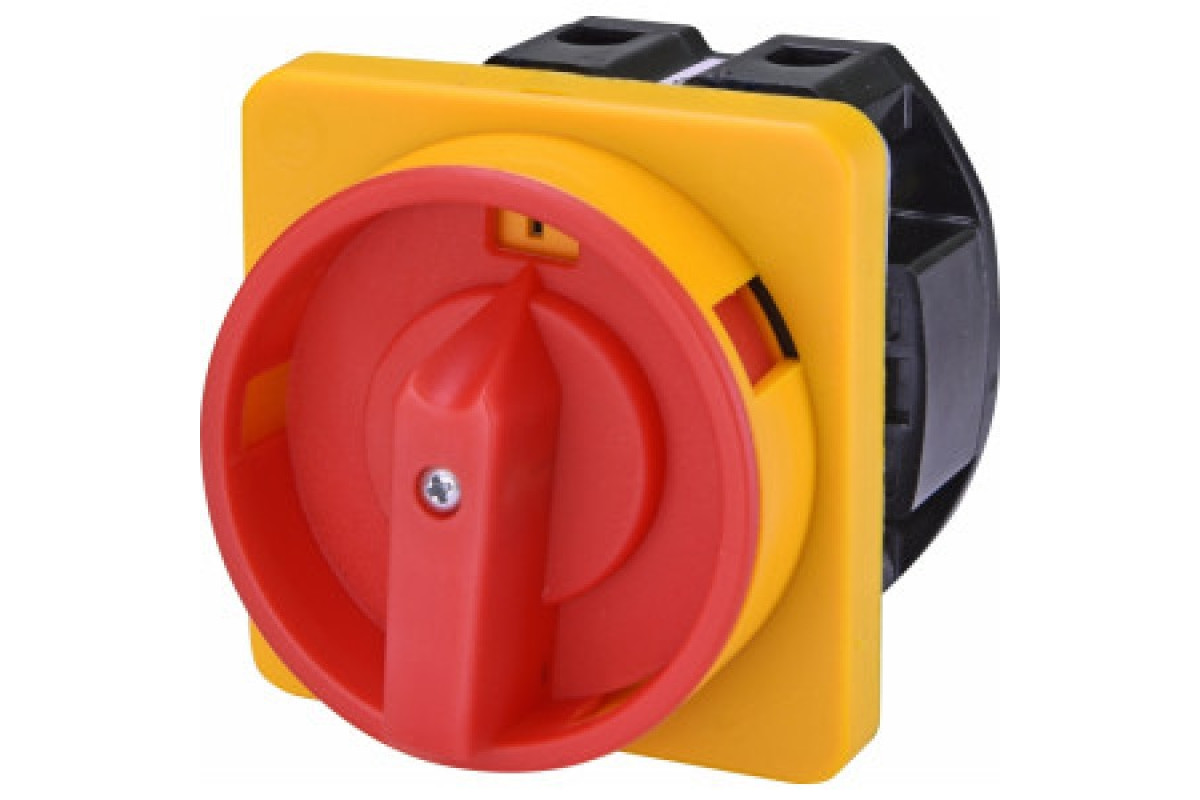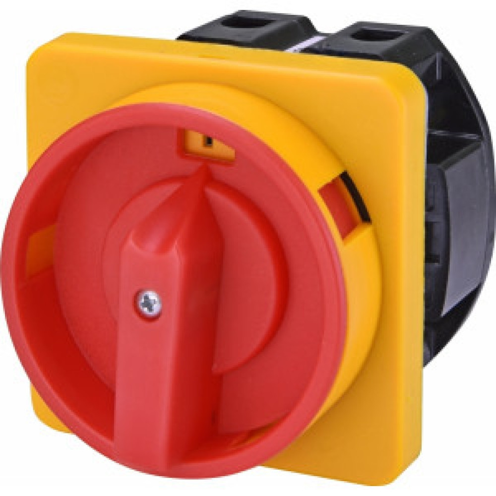 Пакетний вимикач аварійного типу CS 63 90 U LK. Встановлення на дверцята електричного щита. Струм - 63А. Однополюсний. Керування - поворот з можливістю блокування замком в положенні 0. Схема вимкнути - ввімкнути (0-1). Колір - Червоно-жовтий.