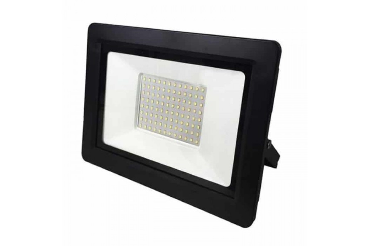 Прожектор світлодіодний ASLAN-100 100W 6400К ступінь захисту від зовнішніх впливів IP65Світлодіодні прожектори широко використовуються у зовнішньому освітленні: для підсвічування фасадів будівель, дворових територій, рекламних конструкцій, ландшафтного дизайну, спортивних майданчиків, та для внутрішнього освітлення складів, під’їздів, цехів, студій тощо. Особливо ефектно і стильно виглядають будівлі і архітектурні споруди, підсвічені LED прожекторами у вечірній час. Також прожектори незамінні на будмайданчиках, на автостоянках, на інших промислових об’єктах.