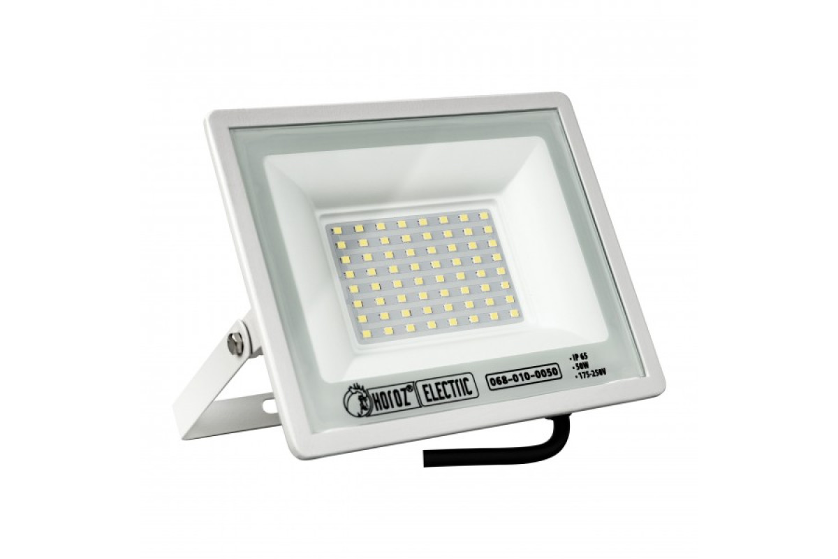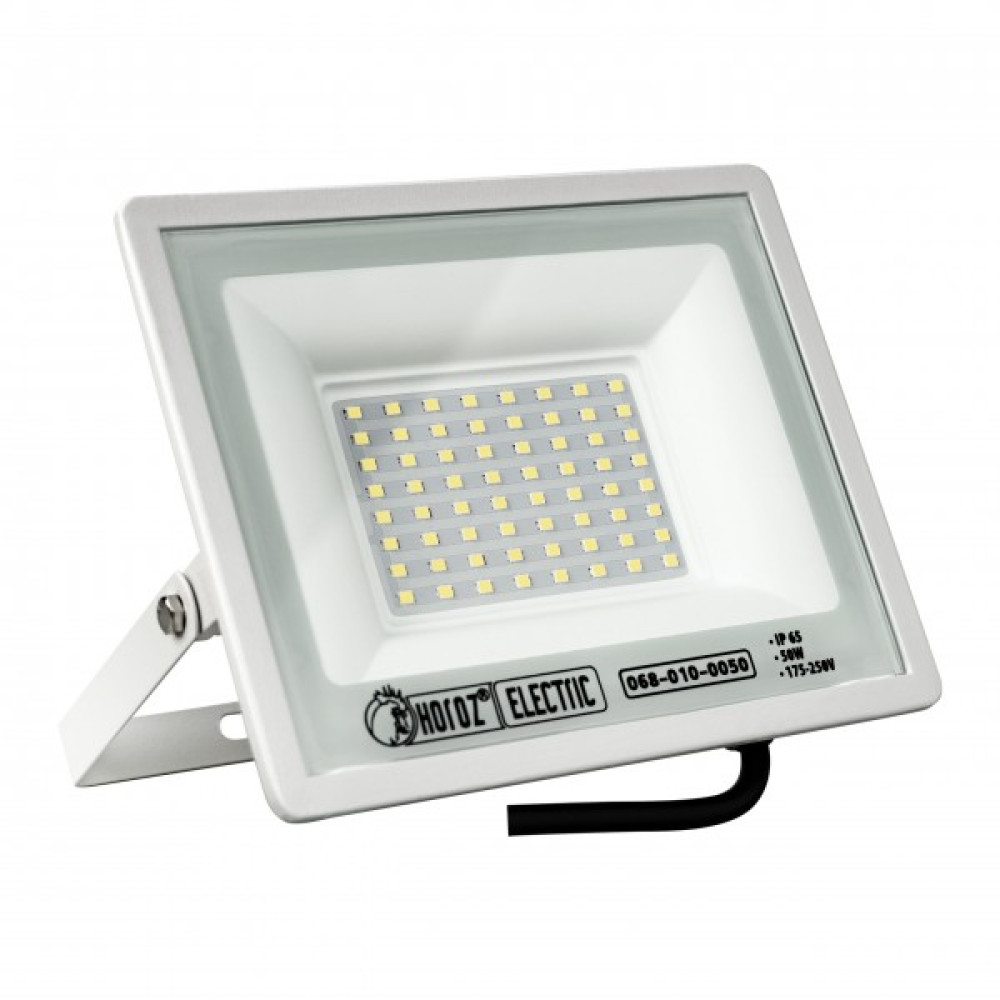 Приблизна дальність і яскравість одержуваного освітлення в даної моделі з потужністю 50W: для орієнтованого підсвічування - 13м, для загальних робіт - 5м, для точних робіт - 5м. Цей потужний LED прожектор забезпечує рівний комфортний світловий потік без пульсацій, що в свою чергу не призводить до втоми і не погіршує емоційний стан. Вбудовані світлодіоди генерують яскраве, холодне світіння з колірною температурою 6400К.