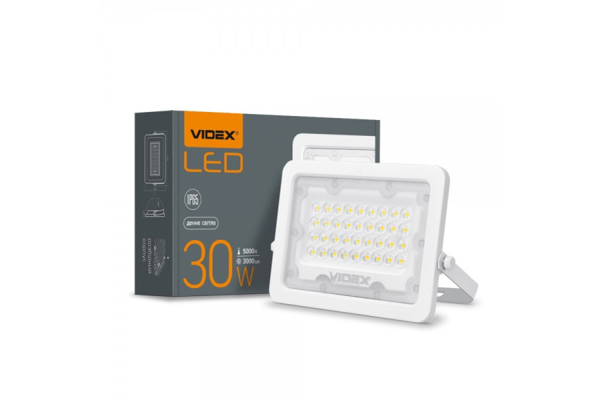 LED прожектор VIDEX 30W 5000K 177x122x24мм. IP65 IK08. 100Лм/В 3000Лм. (100 000) 30 000 годин 2 роки! прожектор світлодіодний прожектор VIDEX LED прожектор VIDEX світлодіодний прожектор прожектор для гаража лєд прожектор Відекс світлодіодний прожектор VIDEX