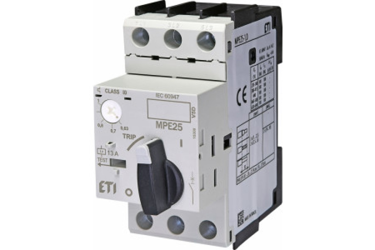 Серія автоматичних вимикачів MPE сконструйована для захисту двигунів невеликої потужності від коротких замикань та перевантажень. Відмінними характеристиками моделей серії MPE є захист від обриву фаз, можливість тестування теплового захисту та поворотна ручка. У комплекті з силовими контакторами серій CE та CEM вони можуть складати системи дистанційного керування.