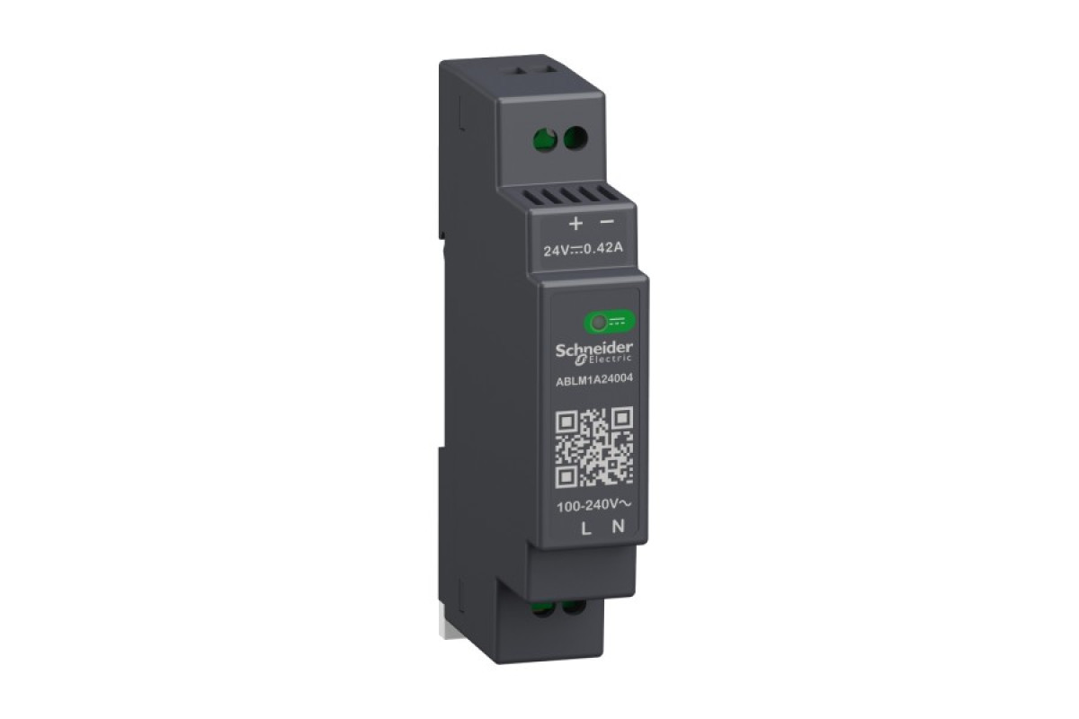 Це модульний блок живлення з регульованим імпульсним режимом ABLM (SMPS) подає напругу постійного струму. Номінальна вхідна напруга від 100 В до 240 В змінного струму, номінальний вихідний струм 0. 42 А при 24 В постійного струму і номінальну вихідну потужність 10 Вт. Підходить для живлення постійною напругою, необхідною в таких сферах як транспортування, пакування, управління, харчова промисловість, гірничодобувна промисловість, нафтогазова промисловість і водопостачання. Встановлюється на омега-рейку або кріпиться гвинтами. Ширина 53 мм, висота 91 мм, глибина 55,6 мм.