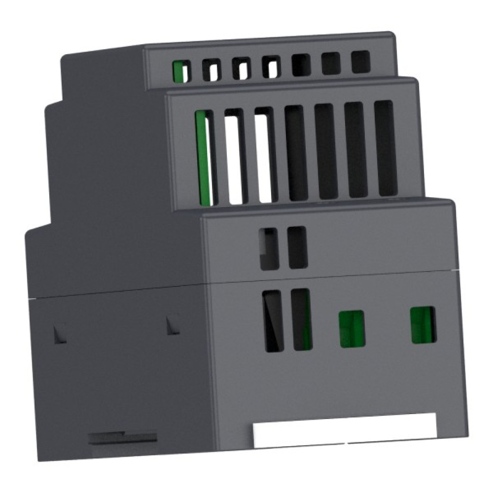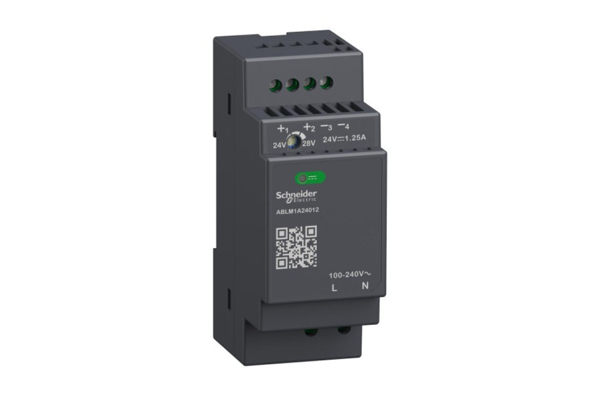 Для його захисту рекомендовано використовувати мініатюрні вимикачі Acti9 iC60. Тип захисту - крива 4A, B або C. На передній панелі є світлодіод, що вказує на наявність вихідної напруги постійного струму, а також QR-код для доступу до технічної документації. Завдяки модульному корпусу, вони можуть бути встановлені як в шафах, так і на промислових панелях шляхом закріплення на омега-рейці (DIN). Розроблені для простих машин, модульні джерела живлення в першу чергу цінуються за свою надзвичайну компактність.