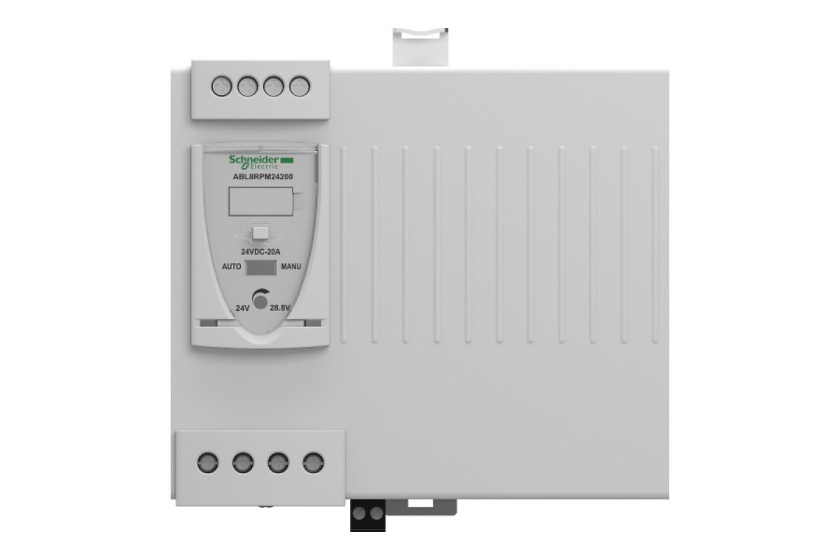 Це універсальний блок живлення ABL8 з регульованим імпульсним режимом (SMPS) подає напругу постійного струму. Номінальна вхідна напруга від 100 до 240 В змінного струму, номінальний вихідний струм 20 А при 24 В постійного струму і номінальну вихідну потужність 480 Вт. Підходить для живлення постійною напругою, необхідною в таких сферах як транспортування, пакування, управління, харчова промисловість, гірничодобувна промисловість, нафтогазова промисловість і водопостачання. Автоматичне скидання дозволяє усунути короткочасні несправності і перезапустити системи.