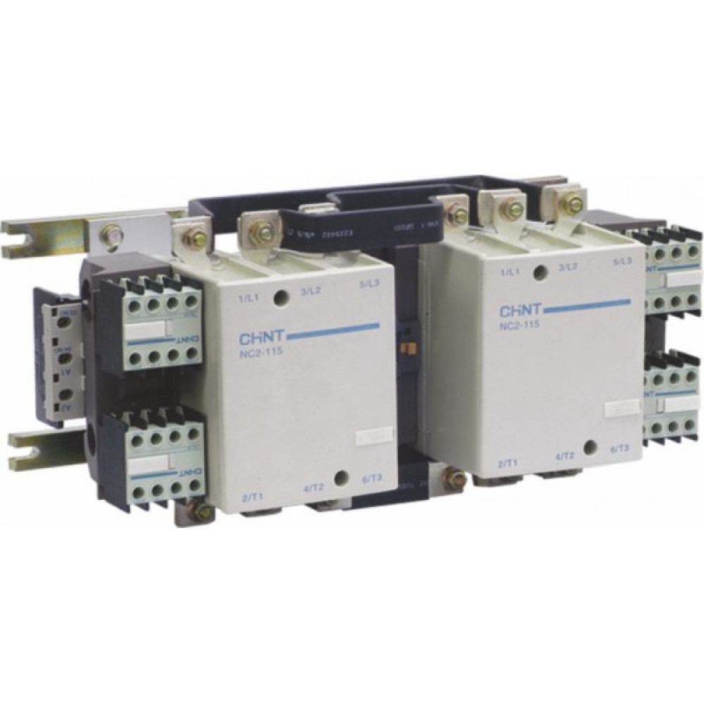 Контактори електромагнітні Chint, серії NC1 призначені для прямого пуску безпосереднім підключенням до мережі, зупинки та реверсування асинхронних двигунів з короткозамкненим ротором напругою до 690 В. При наявності теплових реле контактори здійснюють захист керованих електродвигунів від перевантаження недопустимої тривалості фаз. До складу реверс-комплекту входить 2 контактори, механічне блокування, додаткові контакти та сполучні шини.
