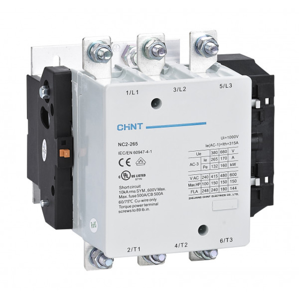 Контактори електромагнітні Chint, серії NC1 призначені для прямого пуску безпосереднім підключенням до мережі, зупинки та реверсування асинхронних двигунів з короткозамкненим ротором напругою до 690 В. При наявності теплових реле контактори здійснюють захист керованих електродвигунів від перевантаження недопустимої тривалості фаз.