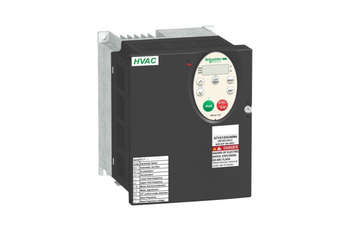 Цей частотний перетворювач Altivar 212 може живити 3-фазні асинхронні двигуни. Індекс захисту IP21 і вбудований фільтр ЕМС. Він працює при номінальній потужності до 3 кВт і номінальній напрузі від 380 В до 480 В змінного струму. Його конструкція базується на еко-енергії зі зниженням споживання енергії до 70% порівняно зі звичайною системою керування.