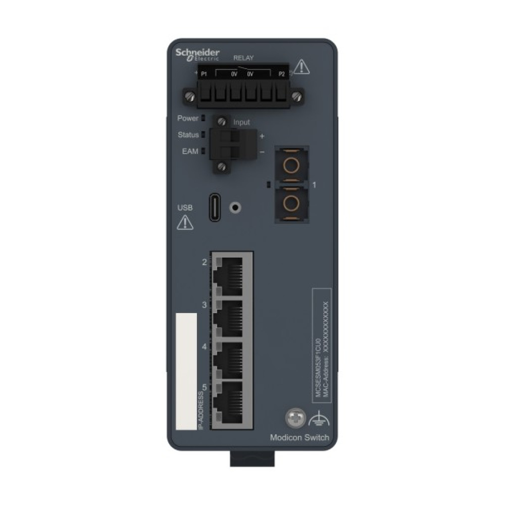 Продукт є частиною лінійки Modicon Networking, пропозиції керованого комутатора Modicon Standart. Це керований комутатор Ethernet TCP/IP, який оснащений 4 портами передачі даних для мідного кабелю та 1 портом для багатомодового оптоволокна. Пристрій забезпечує просте та комплексне підключення для кількох пристроїв Ethernet, керування мережею, покращену кібербезпеку та розширені функції комутації. Пристрій працює при споживанні електроенергії 6 Вт і номінальній напрузі від 12 до 24 В постійного струму. Він оснащений 6-контактним знімним роз’ємом (блок живлення) для електричного підключення. Його розміри становлять 57 мм (ширина) x 138 мм (висота) x 111 мм (глибина) і важить 0,42 кг. Він має екрановані роз’єми, які підходять для середніх, ізольованих мереж, систем із середнім мережевим трафіком та середнім рівнем складності. Він сертифікований CE, UL, RCM, EAC, UKCA, DNV і відповідає стандартам UL 61010, МЕК 61131 і МЕК 62368-1. Пристрій призначений для встановлення на 35-мм симетричну DIN-рейку. Він забезпечує низьке енергоспоживання та компактні розміри. Лінійка Modicon Networking пропонує розумний і гнучкий спосіб інтеграції рішень Ethernet у вашу роботу, від рівня пристрою до мережі керування та вашої корпоративної мережі.