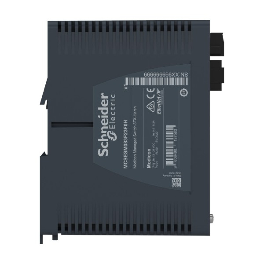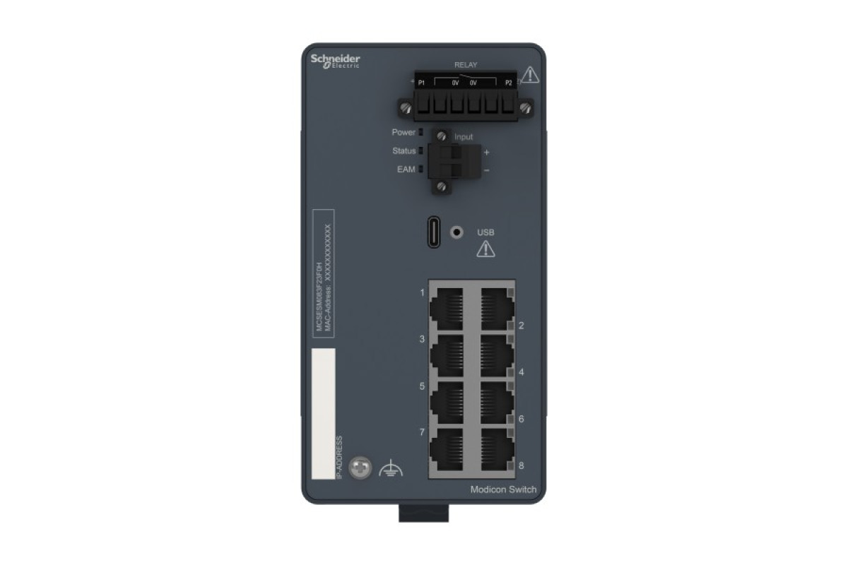 Продукт є частиною лінійки Modicon Networking, пропозиції керованого комутатора Modicon Standart. Це керований комутатор Ethernet TCP/IP, який оснащений 8 портами передачі даних для мідного кабелю. Пристрій забезпечує просте та комплексне підключення для кількох пристроїв Ethernet, керування мережею, покращену кібербезпеку та розширені функції комутації. Пристрій працює при споживанні електроенергії 8 Вт і номінальній напрузі від 12 до 24 В постійного струму. Він оснащений 6-контактним знімним роз’ємом (блок живлення) для електричного підключення. Його розміри становлять 73 мм (ширина) x 138 мм (висота) x 111 мм (глибина) і важить 0,50 кг. Він має екрановані роз’єми, які підходять для середніх, ізольованих мереж, систем із середнім мережевим трафіком та середнім рівнем складності. Він сертифікований CE, UL, RCM, EAC, UKCA, DNV і відповідає стандартам UL 61010, МЕК 61131 і МЕК 62368-1. Пристрій призначений для встановлення на 35-мм симетричну DIN-рейку. Він забезпечує низьке енергоспоживання та компактні розміри. Лінійка Modicon Networking пропонує розумний і гнучкий спосіб інтеграції рішень Ethernet у вашу роботу, від рівня пристрою до мережі керування та вашої корпоративної мережі.