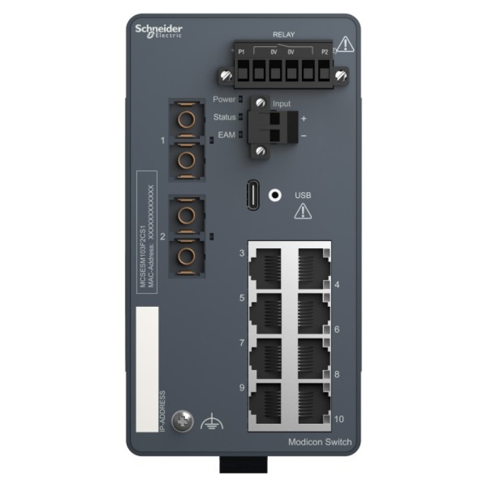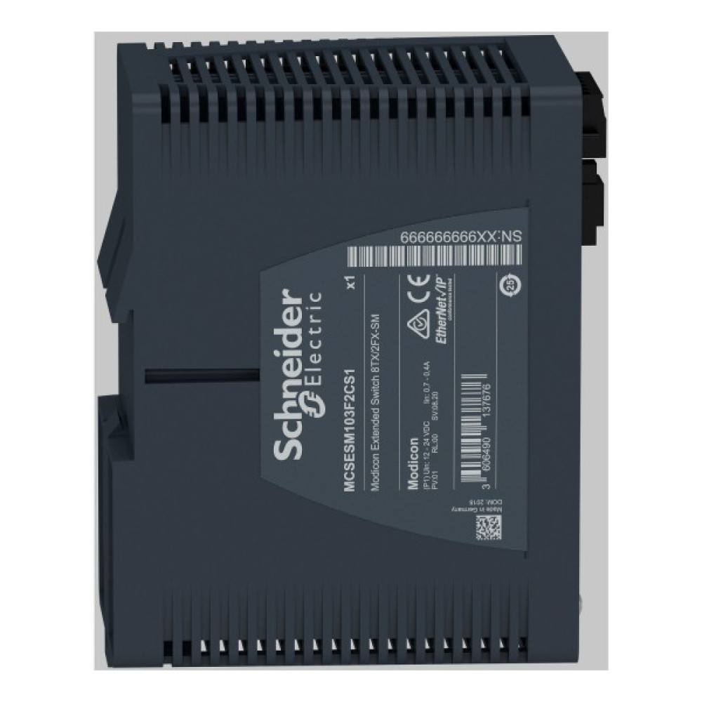 Продукт є частиною лінійки Modicon Networking, пропозиції керованого комутатора Modicon Extended. Це керований комутатор Ethernet TCP/IP, який оснащений 8 портами передачі даних для мідного кабелю та 2 портами для одномодового оптоволокна. Пристрій забезпечує просте та комплексне підключення для кількох пристроїв Ethernet, керування мережею, покращену кібербезпеку та розширені функції комутації. Пристрій працює при споживанні електроенергії 8 Вт і номінальній напрузі від 12 до 24 В постійного струму. Він оснащений 6-контактним знімним роз’ємом (блок живлення) для електричного підключення. Його розміри становлять 73 мм (ширина) x 143 мм (висота) x 118 мм (глибина) і важить 0,50 кг. Він має екрановані роз’єми, які підходять для середніх, ізольованих мереж, систем із середнім мережевим трафіком та середнім рівнем складності. Він сертифікований CE, UL, RCM, DNV, Lloyds, BV, ATEX і відповідає стандартам UL 61010, МЕК 61131 і МЕК 62368-1. Пристрій призначений для встановлення на 35-мм симетричну DIN-рейку. Він забезпечує низьке енергоспоживання та компактні розміри. Лінійка Modicon Networking пропонує розумний і гнучкий спосіб інтеграції рішень Ethernet у вашу роботу, від рівня пристрою до мережі керування та вашої корпоративної мережі.