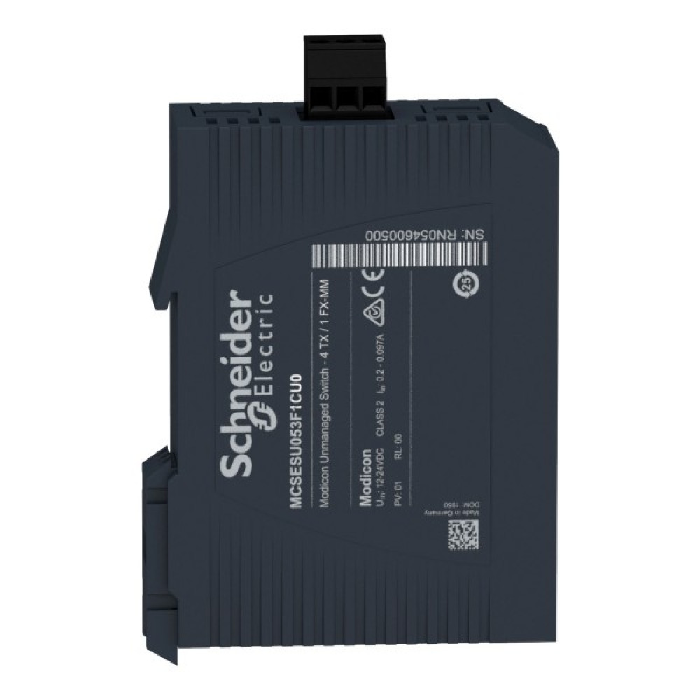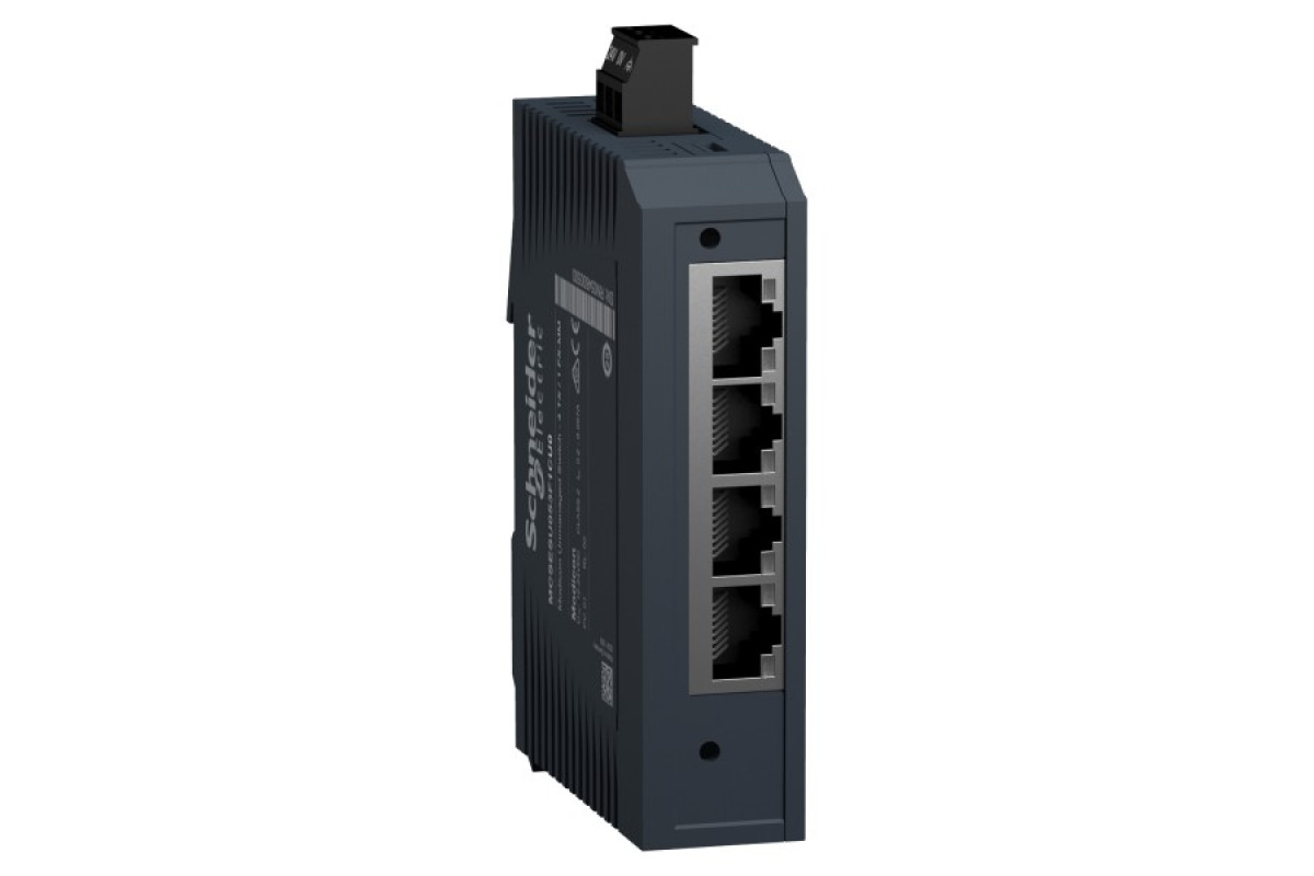 Продукт є частиною лінійки Modicon Networking, пропозиції некерованого комутатора Modicon Standard. Це некерований комутатор Ethernet TCP/IP, який оснащений 4 портами передачі даних для мідного кабелю та 1 портом для багатомодового оптоволокна. Він забезпечує просте підключення для кількох пристроїв Ethernet і надає клієнтам більше можливостей із застосуванням промислового рівня. Пристрій працює при споживанні потужності 2,4 Вт і номінальній напрузі від 12 до 24 В постійного струму. Має знімний 3-контактний розєм для живлення. Його розміри: 26 мм (ширина) x 102 мм (висота) x 79 мм (глибина) і вага 0,130 кг. Він має екрановані роз’єми, які підходять для невеликих, ізольованих мереж, систем із невеликим мережевим трафіком та низьким рівнем складності. Він має сертифікати CE, UL, RCM, UKCA, EAC і відповідає стандартам UL 61010 і МЕК 61131. Пристрій призначений для встановлення на 35-мм симетричну DIN-рейку. Він забезпечує низьке енергоспоживання та компактні розміри. Лінійка Modicon Networking пропонує розумний і гнучкий спосіб інтеграції рішень Ethernet у вашу роботу, від рівня пристрою до мережі керування та вашої корпоративної мережі.