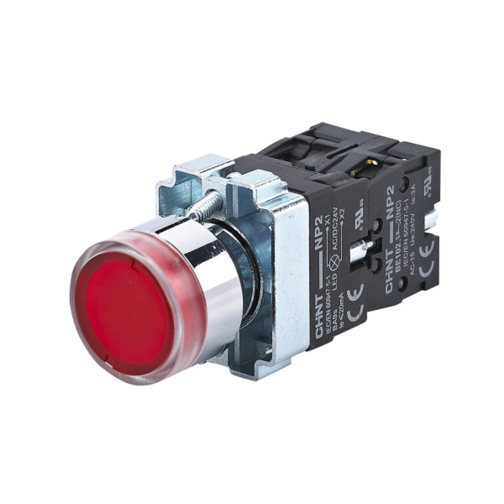 Кнопка NP2-BW3465 1NO+1NC червона AC/DC230В(LED) IP40 (574366)