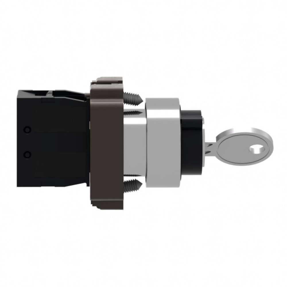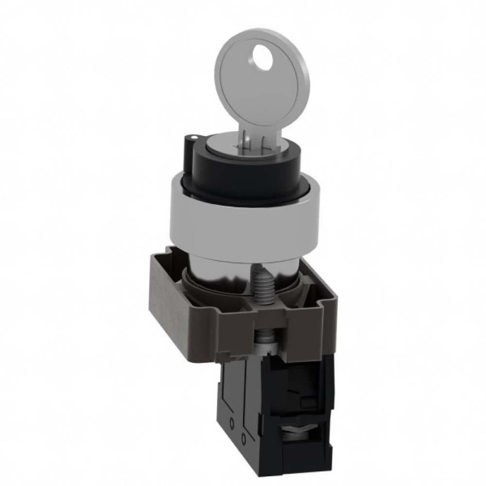 Цей модульний чорний ключовий перемикач Easy Harmony XB2 має 2 положення, працює за допомогою механізму фіксації з витягуванням ключа в обох положеннях. Корпус/фіксуючий хомут попередньо змонтовано з контактним блоком NO. Він має металевий безель, металеву фіксуючу основу та металеві гвинти для стійкості до ударів та вібрації. Цей перемикач забезпечує універсальний інтерфейс для керування вашими машинами. Він легко встановлюється в стандартні вирізи панелі діаметром 22 мм і підключається до схем керування за допомогою класичних гвинтових з’єднань.