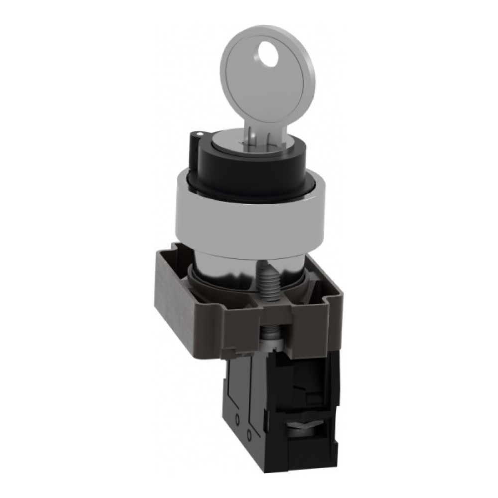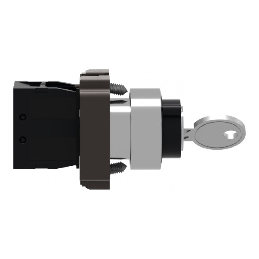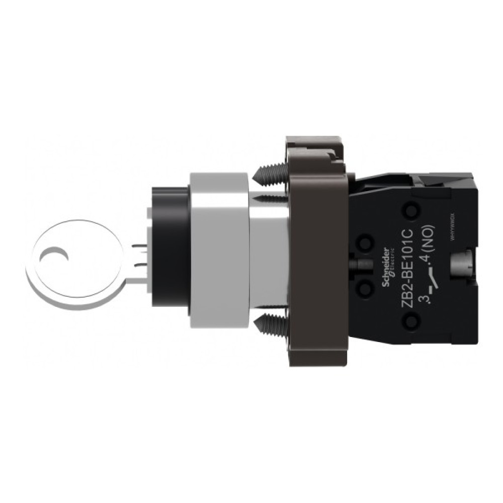 Цей модульний чорний ключовий перемикач Easy Harmony XB2 має 2 позиції, працює за допомогою механізму фіксації з витягуванням ключа в лівому положенні. Корпус/фіксуючий хомут попередньо змонтовано з контактним блоком NO. Він має металевий безель, металеву фіксуючу основу та металеві гвинти для стійкості до ударів та вібрації. Цей перемикач забезпечує універсальний інтерфейс для керування вашими машинами. Він легко встановлюється в стандартні вирізи панелі діаметром 22 мм і підключається до схем керування за допомогою класичних гвинтових з’єднань.