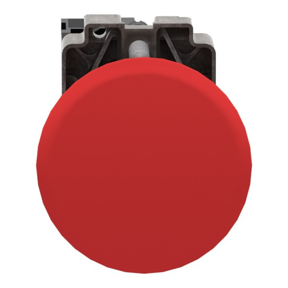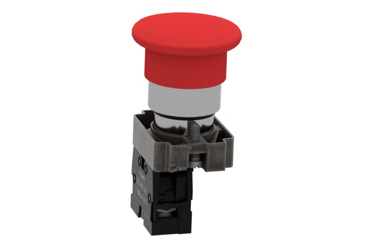 Модульна червона кнопка Easy Harmony XB2 розміром 40 мм у вигляді гриба працює за допомогою механізму пружинного повернення. Його корпус/фіксуючий хомут попередньо встановлено з контактним блоком NC Він має металевий безель, металеву фіксуючу основу та металеві гвинти для стійкості до ударів та вібрації.