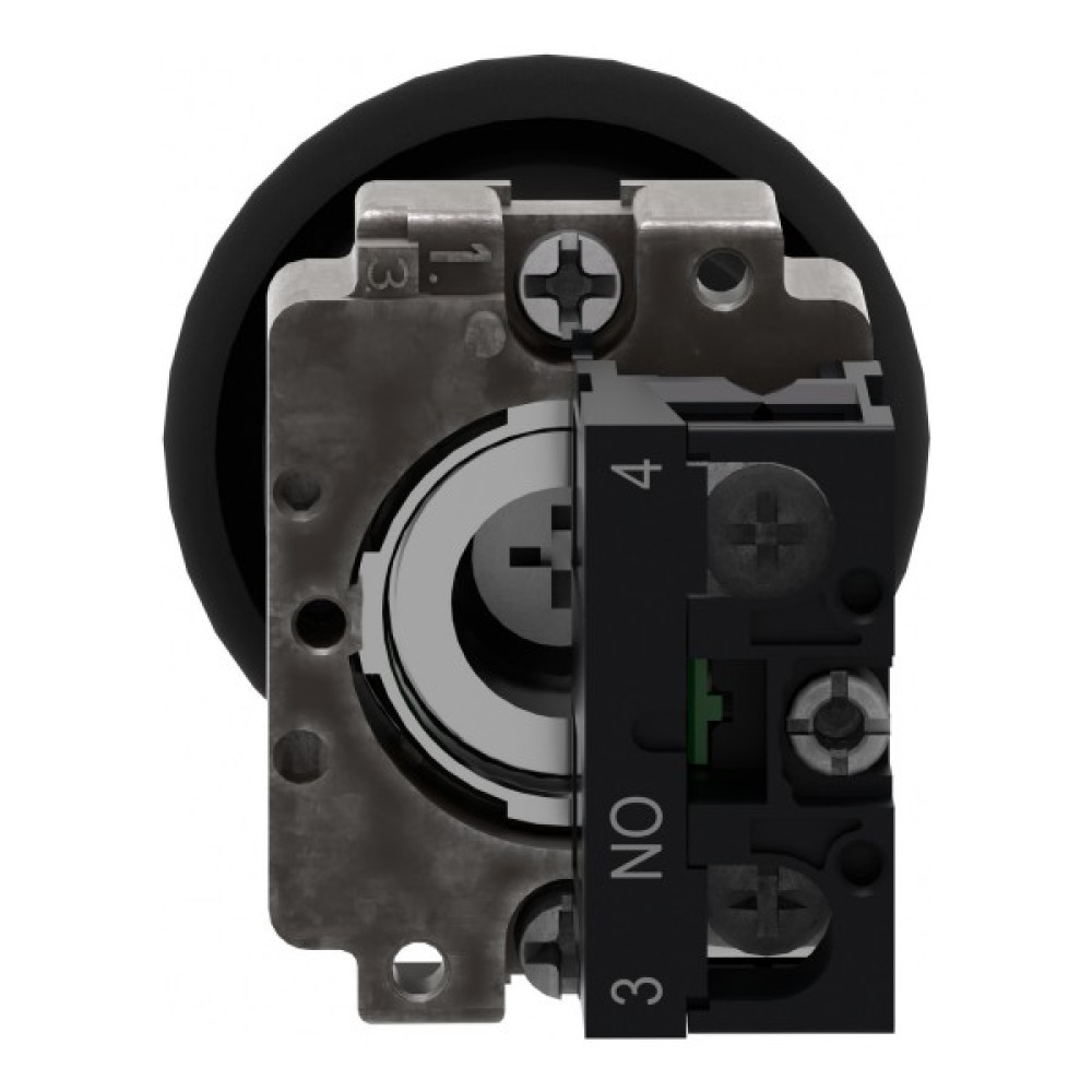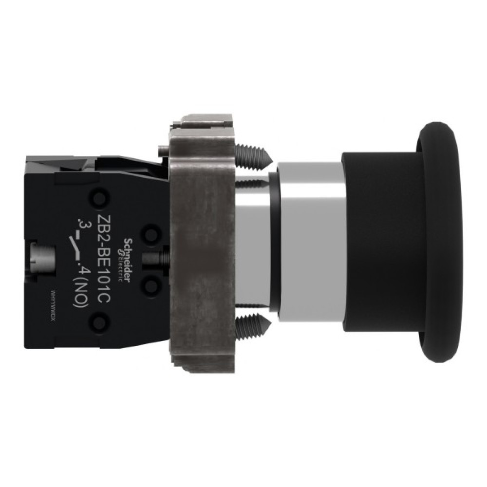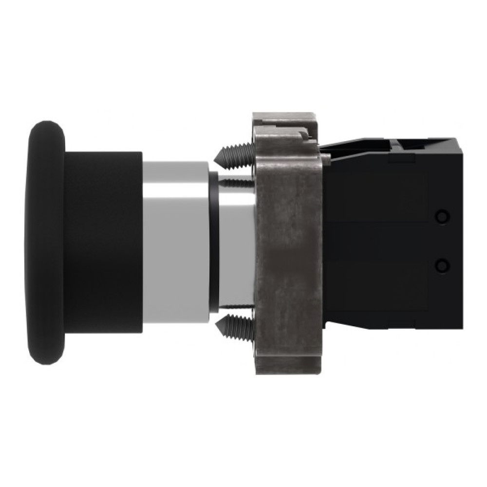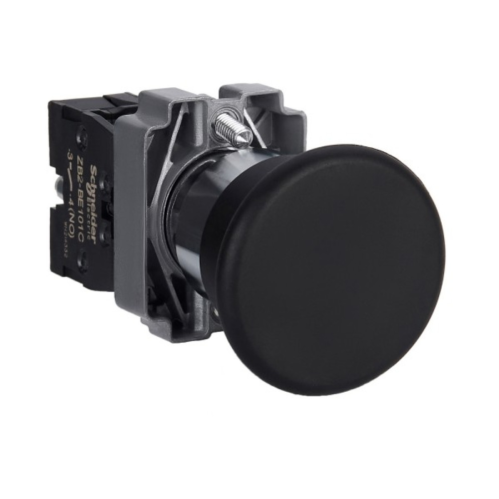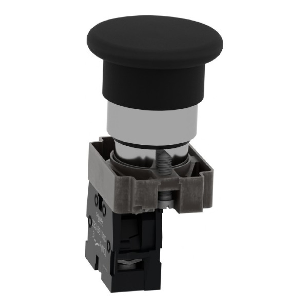 Модульна чорна кнопка Easy Harmony XB2 розміром 40 мм у вигляді гриба працює за допомогою механізму пружинного повернення. Корпус/фіксуючий хомут попередньо змонтовано з контактним блоком NO. Він має металевий безель, металеву фіксуючу основу та металеві гвинти для стійкості до ударів та вібрації.