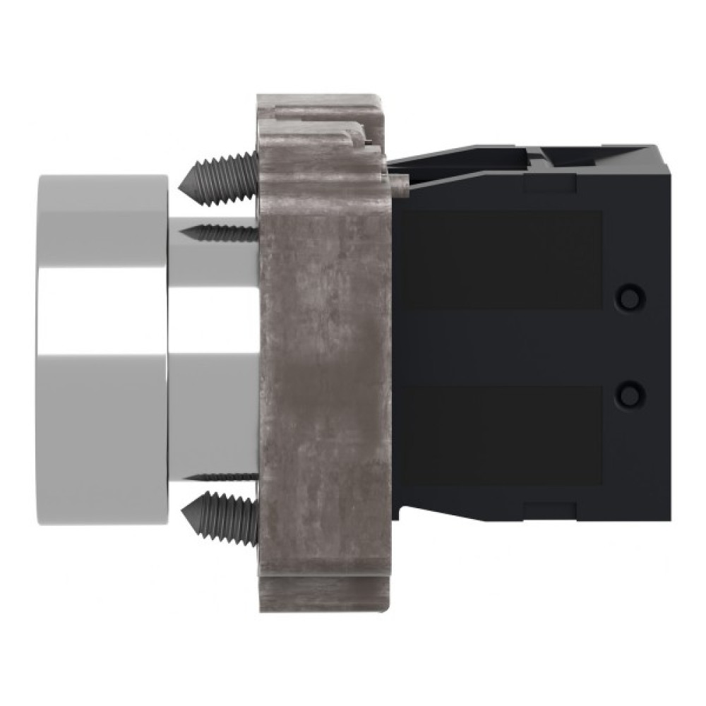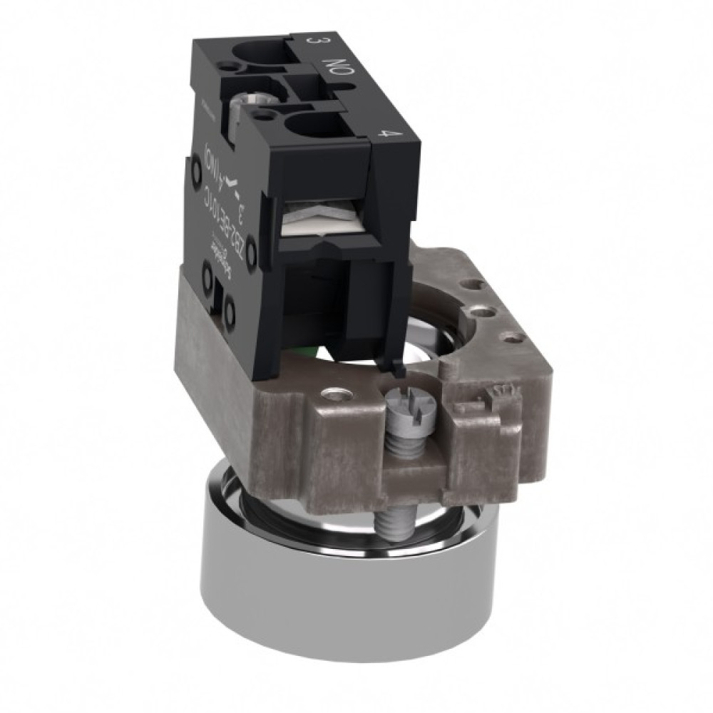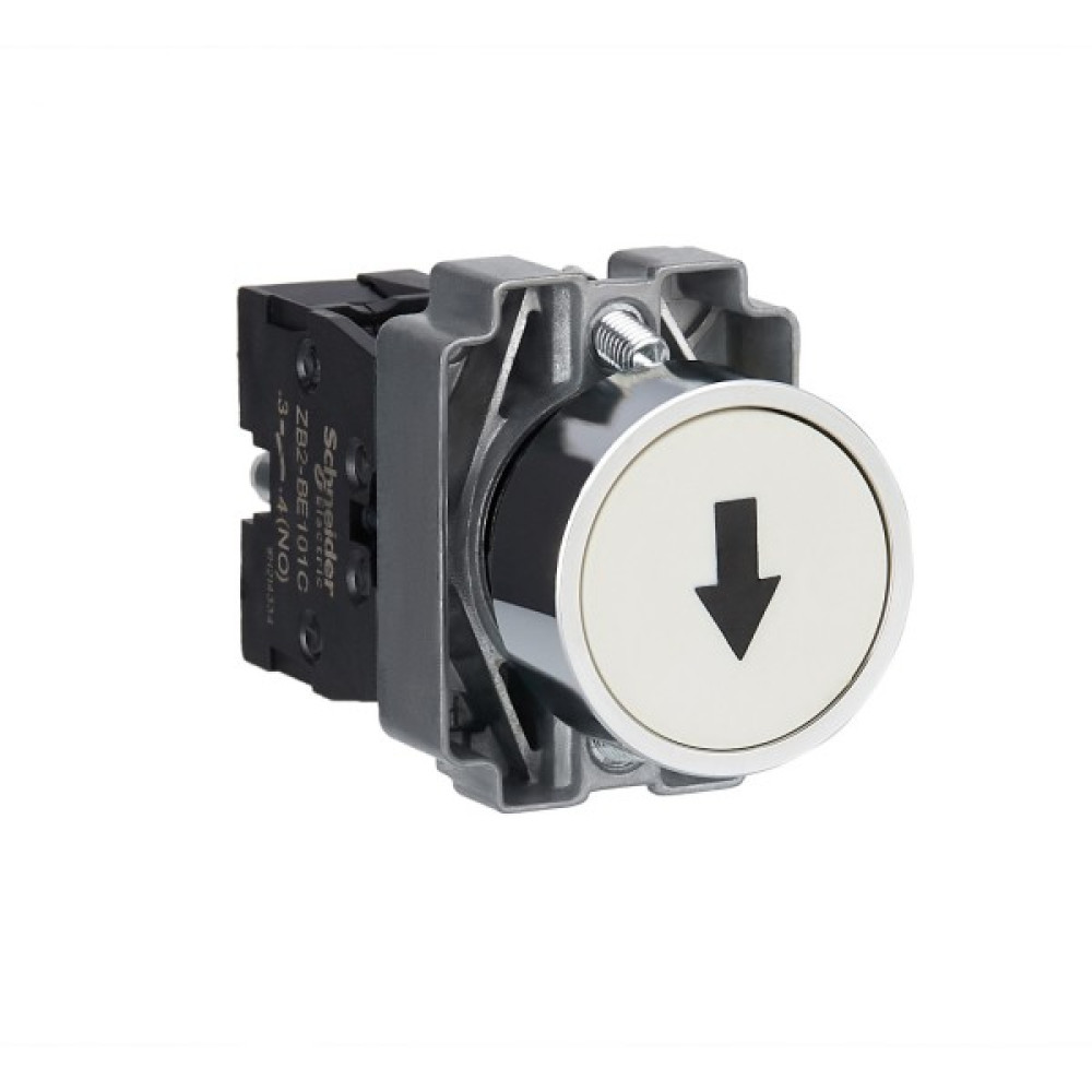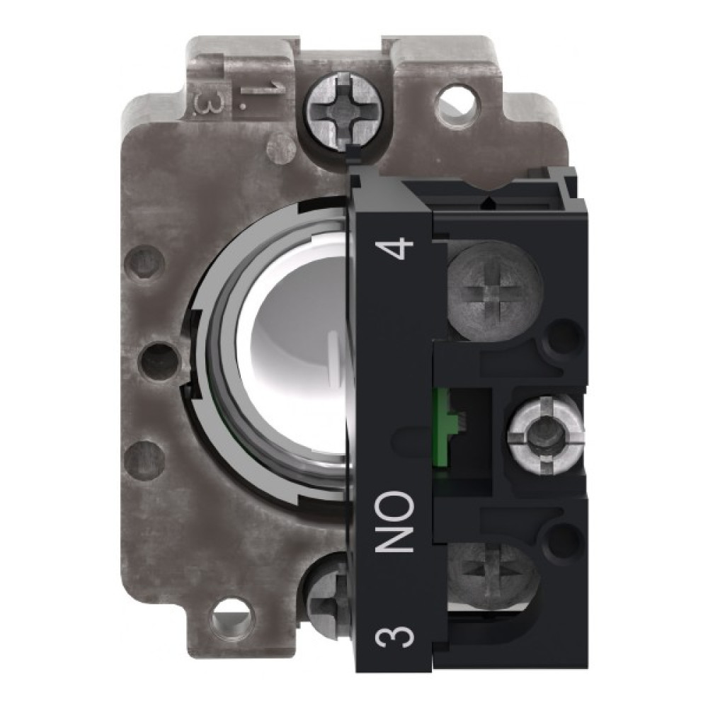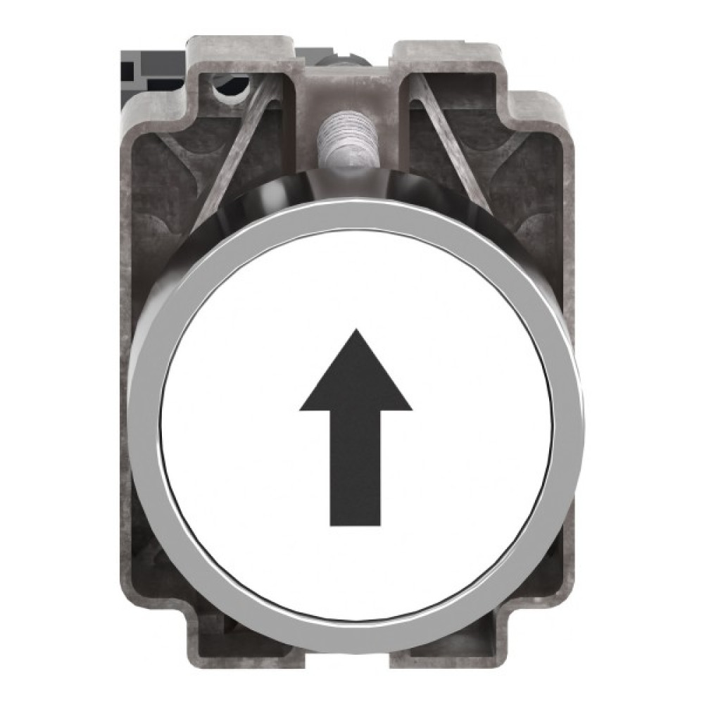 Модульна біла кнопка Easy Harmony XB2 працює за допомогою механізму пружинного повернення. Він позначений символом «стрілка вгору». Корпус/фіксуючий хомут попередньо змонтовано з контактним блоком NO. Він має металевий безель, металеву фіксуючу основу та металеві гвинти для стійкості до ударів та вібрації.