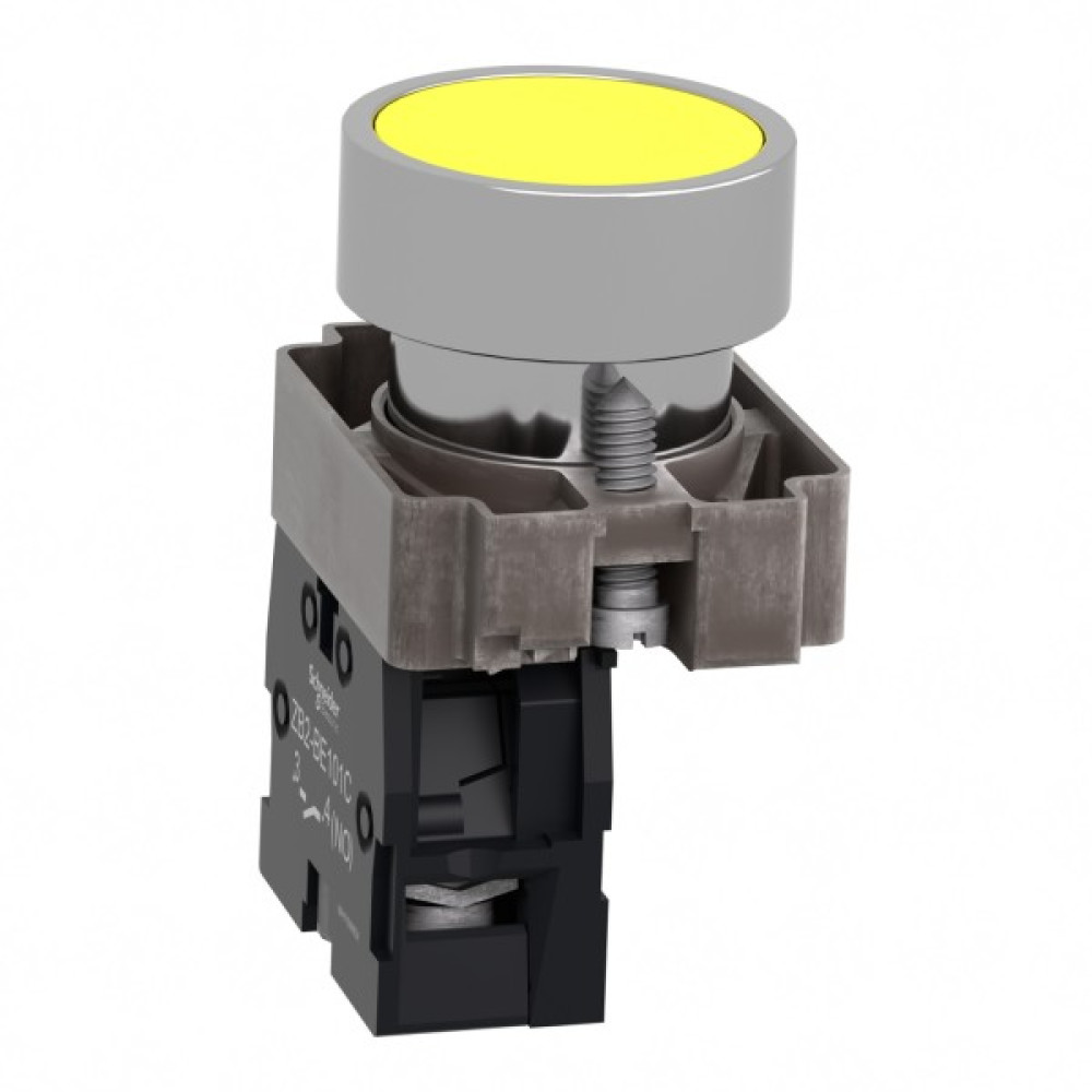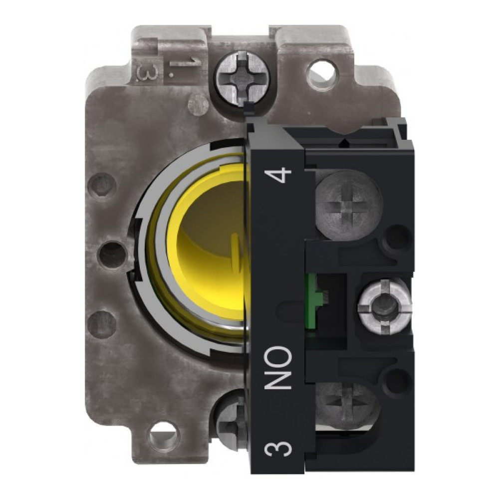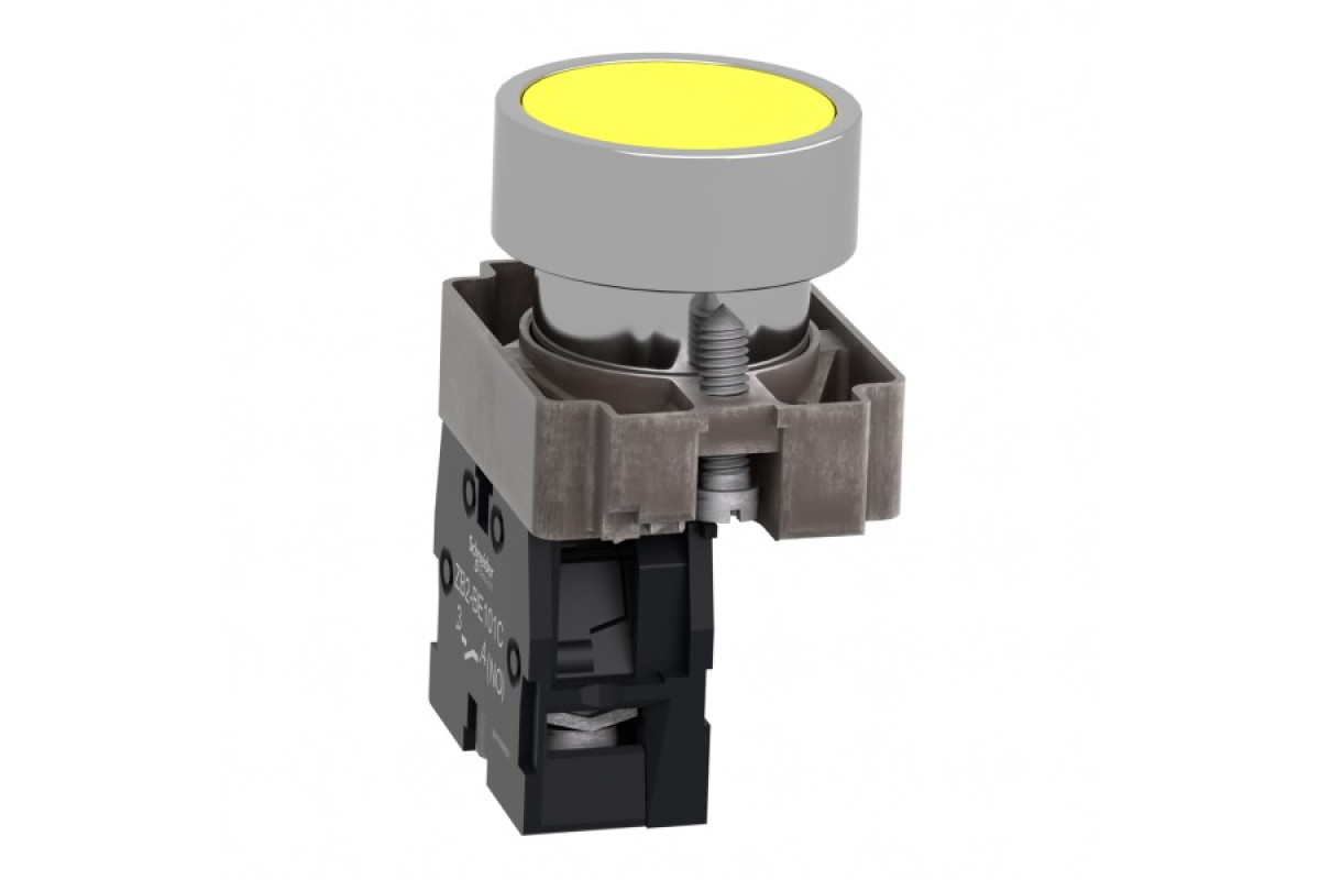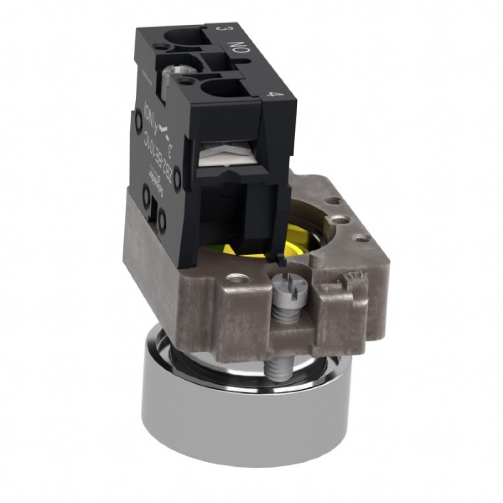 Модульна жовта кнопка Easy Harmony XB2 працює за допомогою механізму пружинного повернення. Корпус/фіксуючий хомут попередньо змонтовано з контактним блоком NO. Він має металевий безель, металеву фіксуючу основу та металеві гвинти для стійкості до ударів та вібрації.