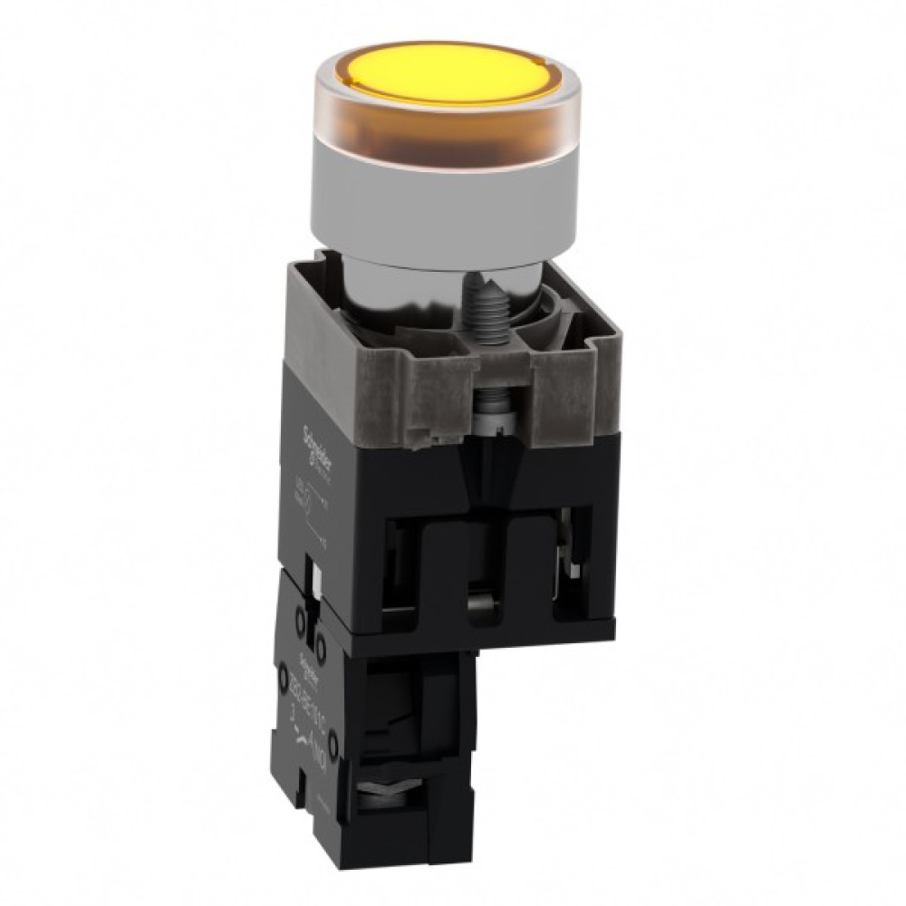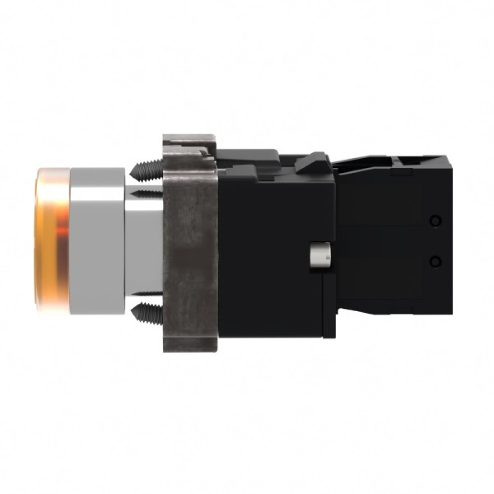 Це модульна помаранчева кнопка з підсвічуванням Easy Harmony XB2 живиться від 220 В змінного струму, забезпечує ергономічний і візуальний інтерфейс для керування вашими машинами. Завдяки яскравому та довговічному світлодіодному підсвічуванню BA9s його чітко помітно візуально на відстані. Корпус/фіксуючий хомут попередньо змонтовано з контактним блоком NO. Він має металевий безель, металеву фіксуючу основу та металеві гвинти для стійкості до ударів та вібрації.