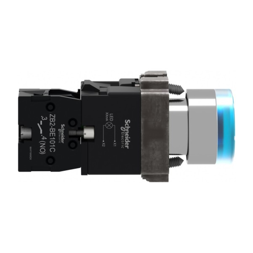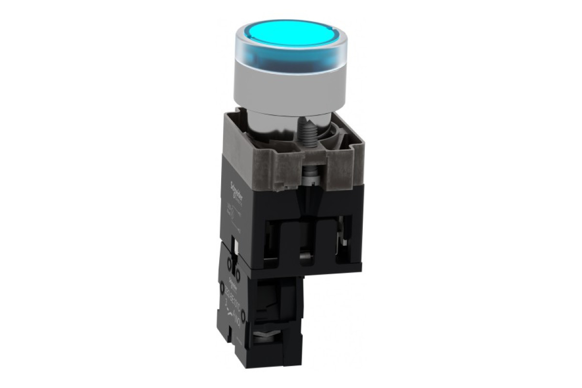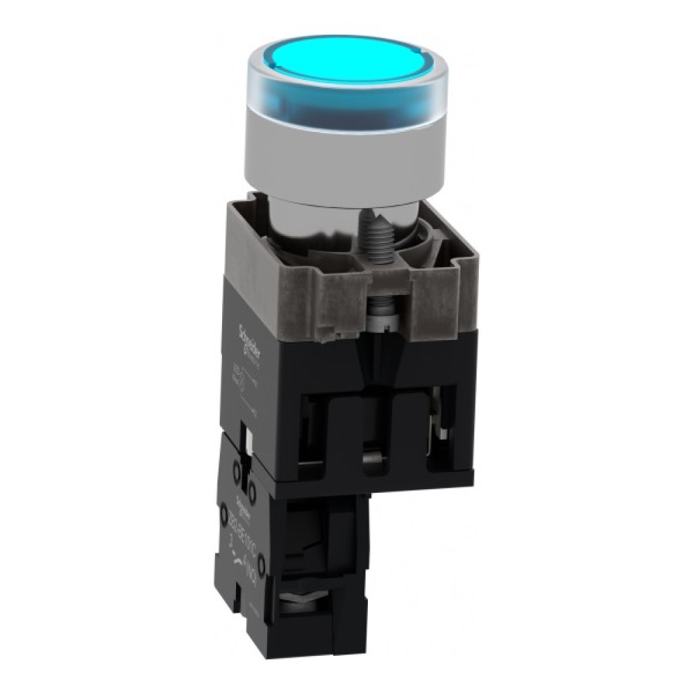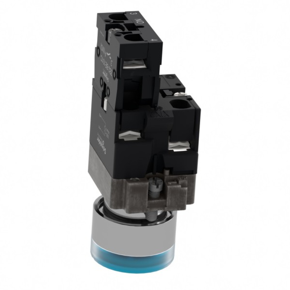 Це модульна синя кнопка з підсвічуванням Easy Harmony XB2, що живиться від 24 В змінного/постійного струму, забезпечує ергономічний і візуальний інтерфейс для керування вашими машинами. Завдяки яскравому та довговічному світлодіодному підсвічуванню BA9s його чітко помітно візуально на відстані. Корпус/фіксуючий хомут попередньо змонтовано з контактним блоком NO. Він має металевий безель, металеву фіксуючу основу та металеві гвинти для стійкості до ударів та вібрації.