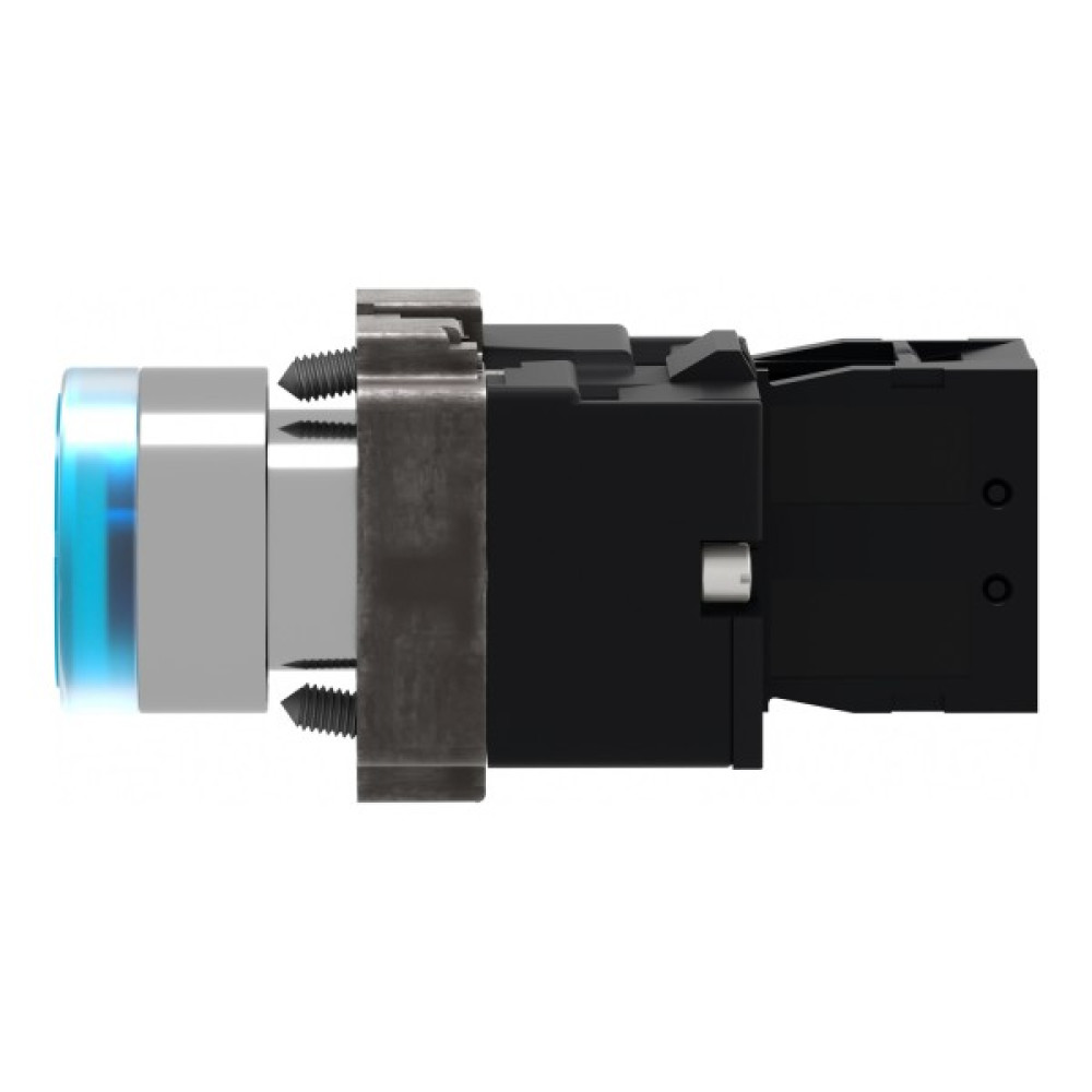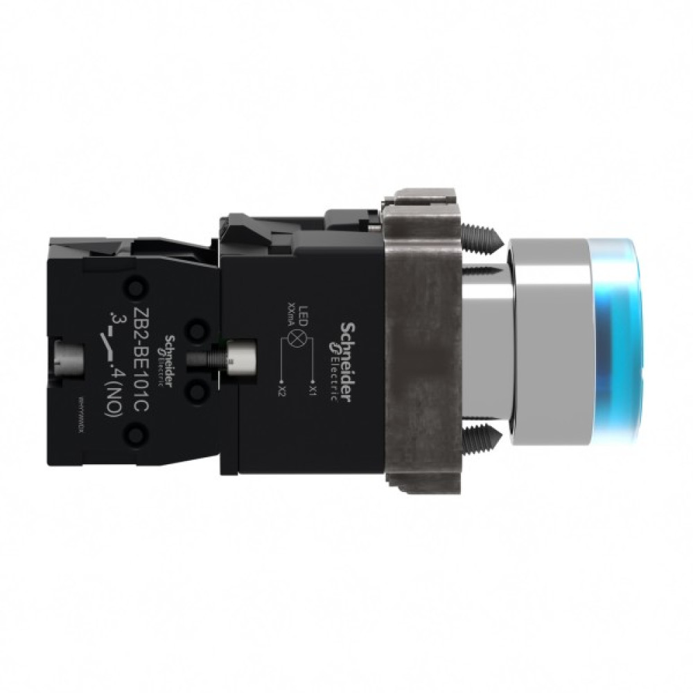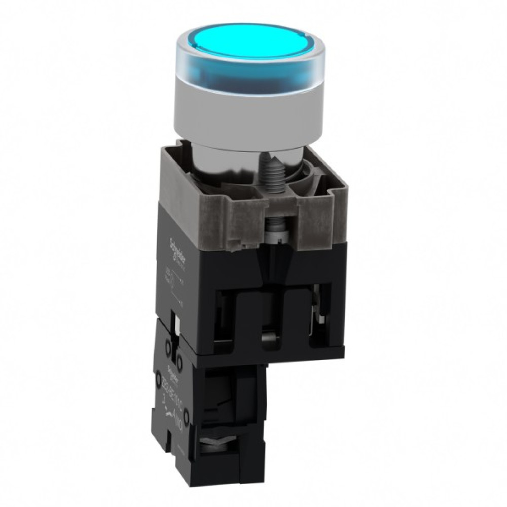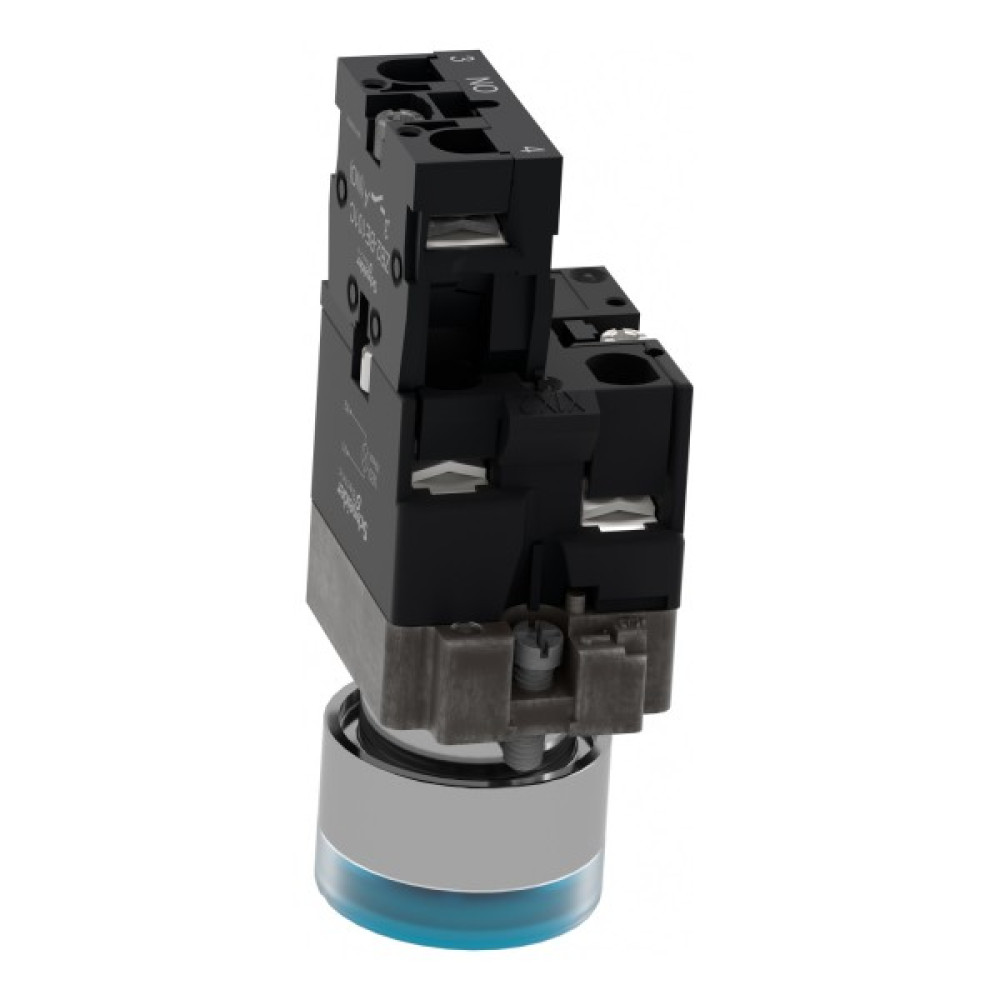 Це модульна синя кнопка з підсвічуванням Easy Harmony XB2 живиться від 220 В змінного струму, забезпечує ергономічний і візуальний інтерфейс для керування вашими машинами. Завдяки яскравому та довговічному світлодіодному підсвічуванню BA9s його чітко помітно візуально на відстані. Корпус/фіксуючий хомут попередньо змонтовано з контактним блоком NO. Він має металевий безель, металеву фіксуючу основу та металеві гвинти для стійкості до ударів та вібрації.