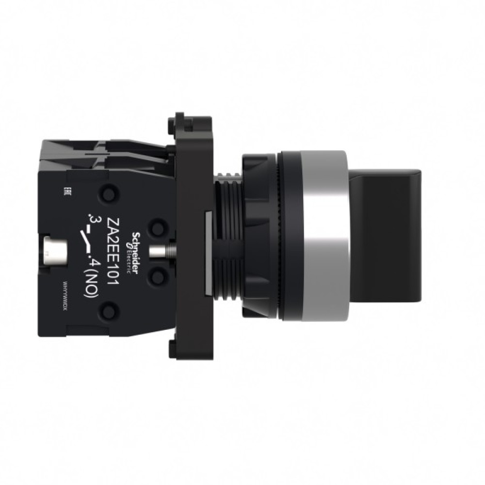 Цей продукт є частиною лінійки Easy Harmony XA2, що включає пластикові кнопки, перемикачі та сигнальні лампи діаметром 22 мм. Цей перемикач має стандартну ручку. Він має 3 робочих положення та працює за допомогою механізму фіксації. Цей перемикач забезпечує універсальний інтерфейс для керування машинами. Він має 2 NO контакт з повільним розривом. Це пластиковий перемикач із металевим кільцевим дизайном.