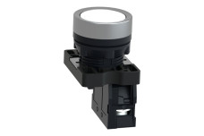 Модульна біла кнопка Easy Harmony XB2 працює за допомогою механізму пружинного повернення. Він позначений символом «стрілка вгору». Корпус/фіксуючий хомут попередньо змонтовано з контактним блоком NO. Він має металевий безель, металеву фіксуючу основ..