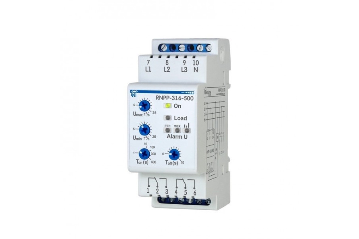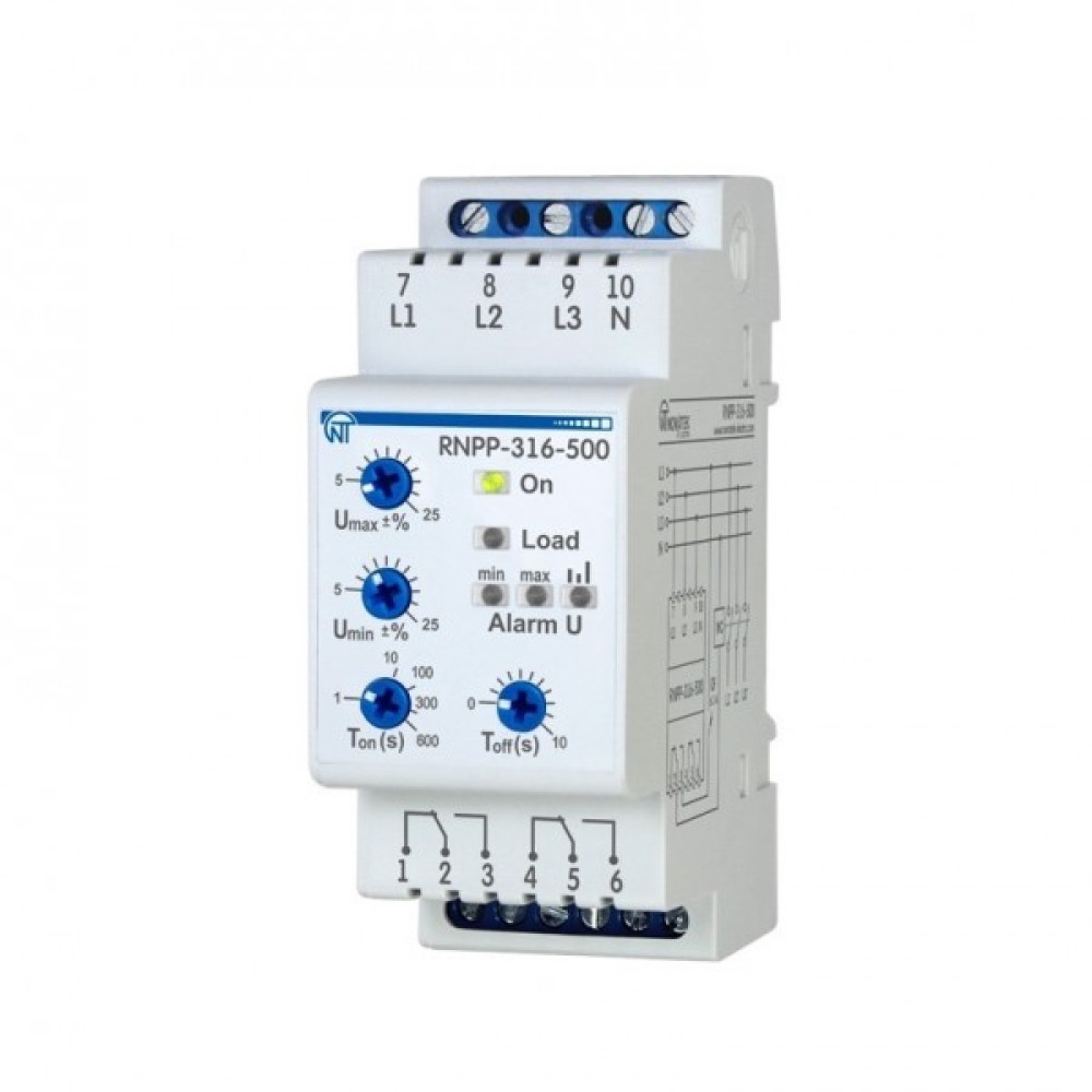 RNPP-316-500 призначене: для контролю допустимого рівня напруги; для контролю правильного чергування і відсутності злипання фаз; для контролю повнофазності і симетричності напруги мережі (перекосу фаз); для вимкнення навантаження при неякісній напрузі мережі; для контролю напруги мережі після вимкнення навантаження і автоматичного увімкнення її після відновлення параметрів напруги; для відображення аварії при виникненні аварійної ситуації і відображення наявності напруги на кожній фазі.