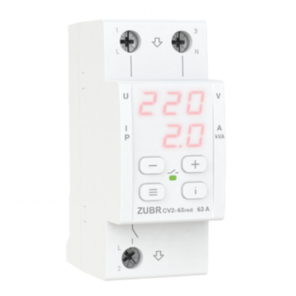 Реле напруги з контролем струму в компактному корпусі ZUBR CV2 red захищає обладнання від високої та низької напруги, обриву нуля, а також обмежує споживання струму чи потужності. При відхиленнях напруги ZUBR вимкне навантаження, а при перевищенні струму або потужності навантаження відключиться через заданий час затримки.