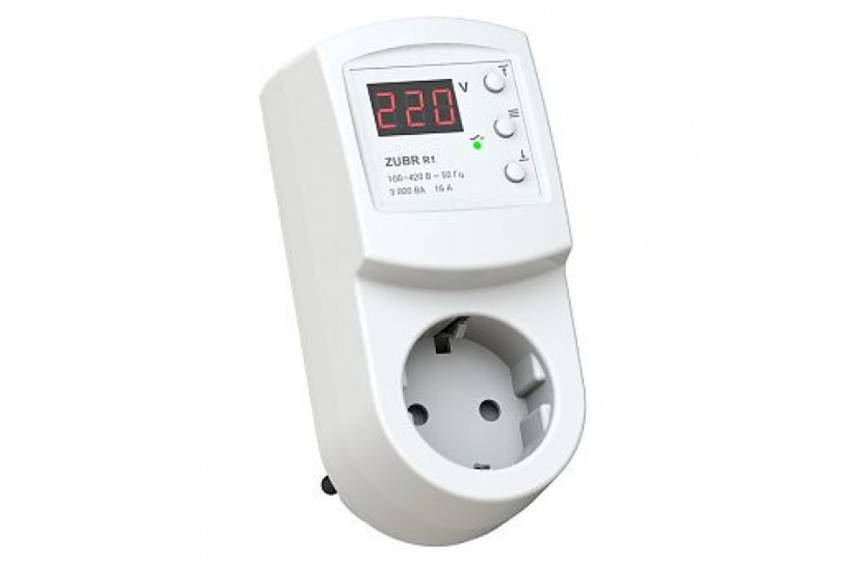 Реле напруги із сенсорним керування для встановлення в розетку Реле напруги ZUBR SR1 red призначене для захисту електричного обладнання від надмірних стрибків напруги. Пристрій діє за принципом відсікача: подача навантаження припиняється при виході напруги за встановлені межі. Зручність у керуванніНалаштування роботи реле здійснюється за допомогою лише чотирьох кнопок. Eкран відображає поточну напругу, системні повідомлення, а також спрощує навігацію в меню. Подача навантаження відбувається після закінчення часу затримки, про що сповістить зелений індикатор.