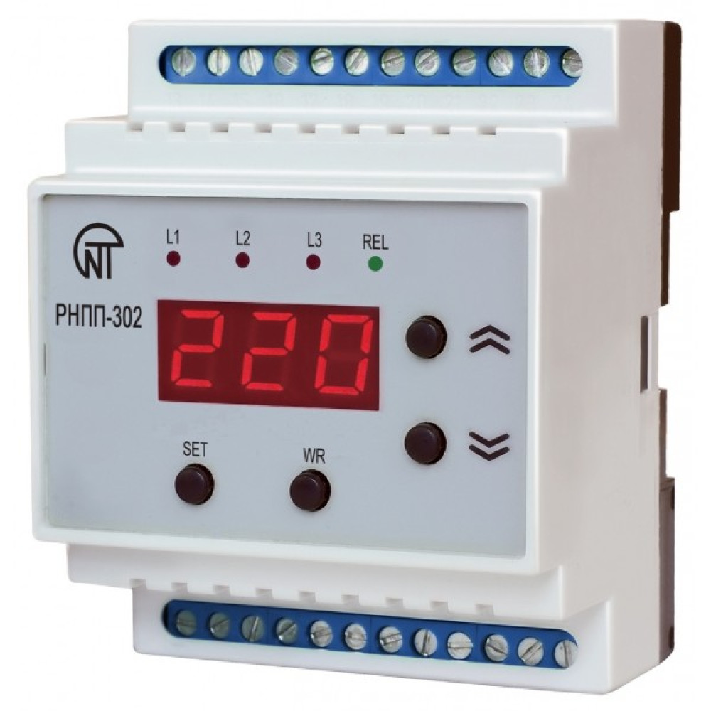Реле напруги RNPP-302 призначене для захисту трифазних споживачів від основних видів аварії в електричній мережі, таких як: вихід діючого значення напруги за межі допустимих порогів; порушення послідовності і злипання фаз; порушення повнофазності і симетричності мережевої напруги. RNPP-302 вимірює діючі значення фазних (лінійних) напруг, у мережах із глухозаземленою або ізольованою нейтраллю і керує котушкою зовнішнього магнітного пускача, що комутує ланцюг живлення навантаження.