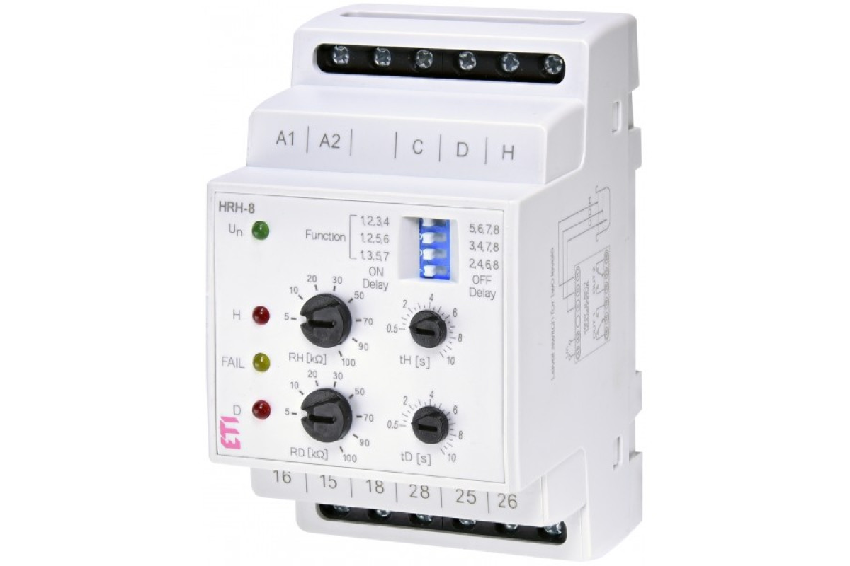 Реле контролю рідини ETI HRH-8 230V AC 2x16A (002470293) багатофункціональне. Чутливість датчика від 5 до 100 kΩ. Затримка часу від помилкового спрацьовування 0,5 - 10 секунд. Максимальна довжина подключаемого провідника до датчика 100м. Напруга живлення 230В AC. Контакт 2х перекидний (16A). Ширина 3 модуля. Повна інформація в прикріплених файлах. Датчики в комплект не входять. Модульні реле контролю рідини. Типу HRH служать для контролю одного або двох рівнів рідини в одному резервуарі або контроль рівня рідини в двох резервуарах. Реле HRN мають функції регулювання чутливості датчиків, регулювання затримки часу та функції «закачування» та «відкачування». Для цих реле пропонується великий вибір спеціальних датчиків, які можна підібрати в розділі серії SHR. Реле для контролю рідини вироблені компанією ETI Словенія, відрізняються європейською якістю і винятковою надійністю.