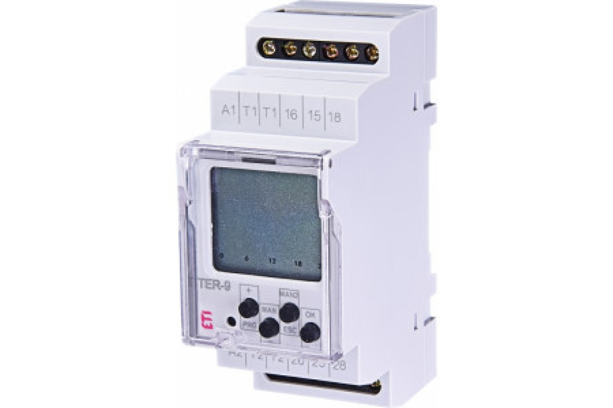 Спеціальні модульні реле контролю температури серії TER, застосовуються для комплексного контролю температури повітря або рідини в опалювальних системах, системах кондиціонування, розподільних щитах, двигунах і т.д. У лінійці присутні як аналогові, так і цифрові термостати, реле TER-7 використовується для контролю температури обмотки електродвигуна.