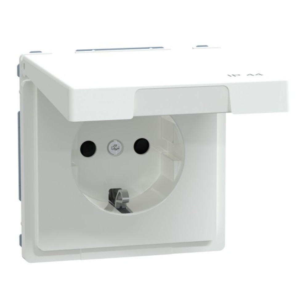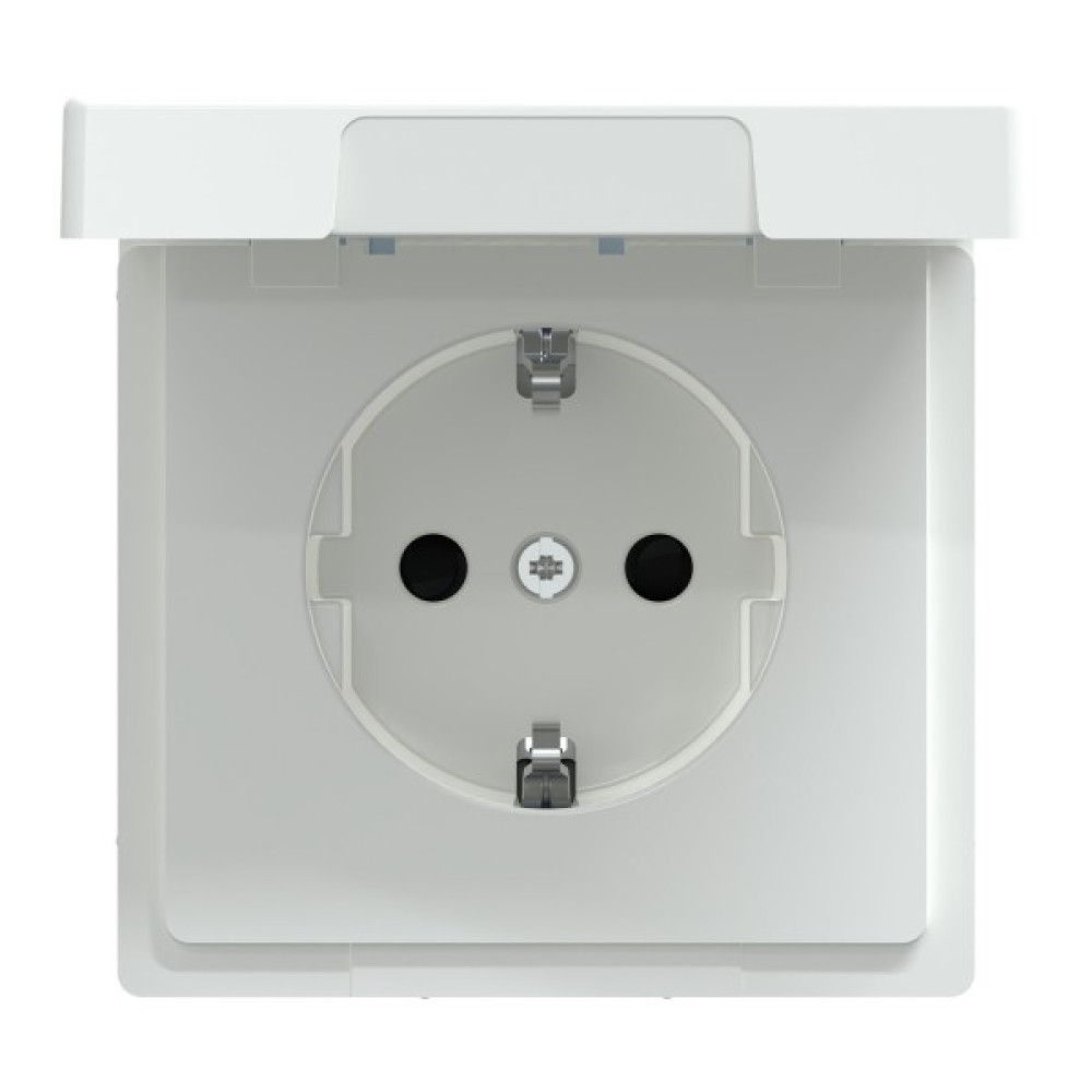 Розетка Schneider Electric Merten System Design MTN2314-6035 кольору білий лотос з заземленням. Клеми підключення розетки - безгвинтові. Розетка виготовлена по стандрту Шуко. Номінальний струм 16 А. Тип монтажу - прихований. Тип кріплення - гвинти та монтажні лапки. Розетка виготовленя з матеріалу PC + ASA. Розетка належить до групи System Design. Більше того, вона відповідає стандарту DIN 49440. Її ширина 71 мм, висота 45 мм і довжина 71 мм. Конфігурація полюсів розетки 2P + E зі шторками, що захищає дітей від можливого ураження електричним струмом. Ступінь захисту IP44.