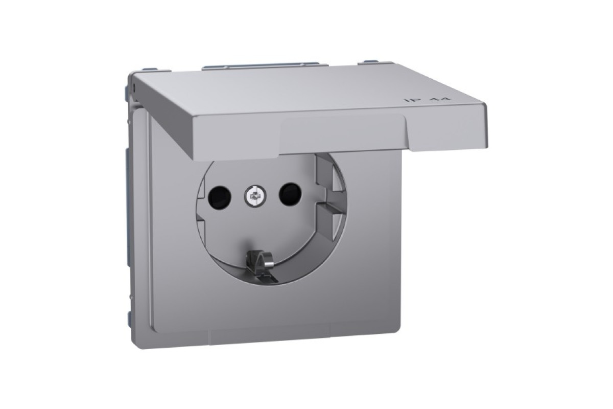 D-Life Розетка з заземленням і кришкою IP44 Нержавіюча сталь