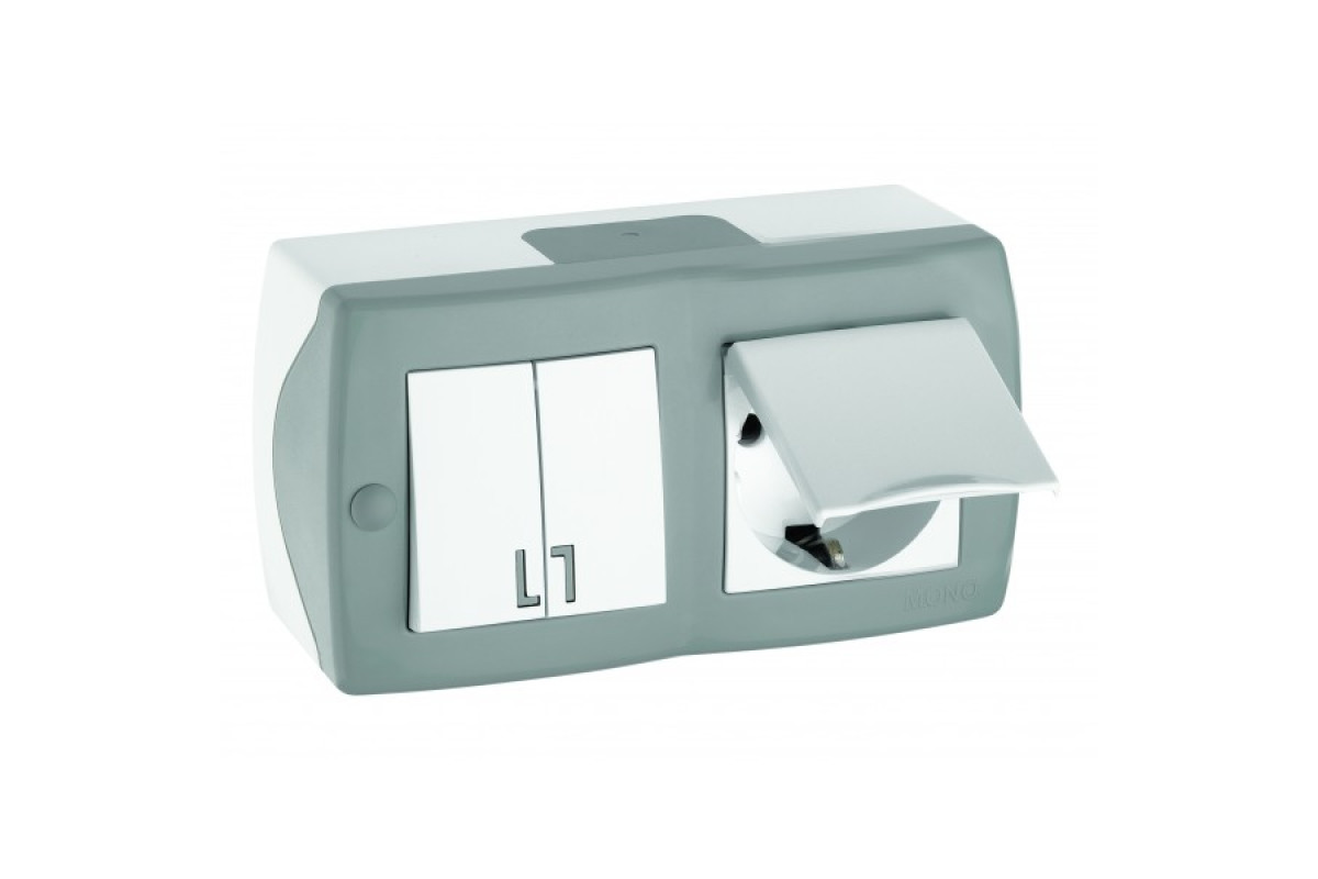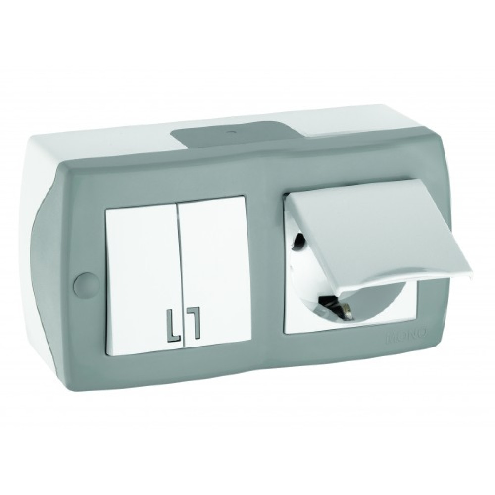 Вимикач двокл.+розетка з заземленням та кришкою, Mono Electric, OCTANS IP 20 (сірий) (104-020001-187) | 0.00 | 0.00 | 0.00 грн |