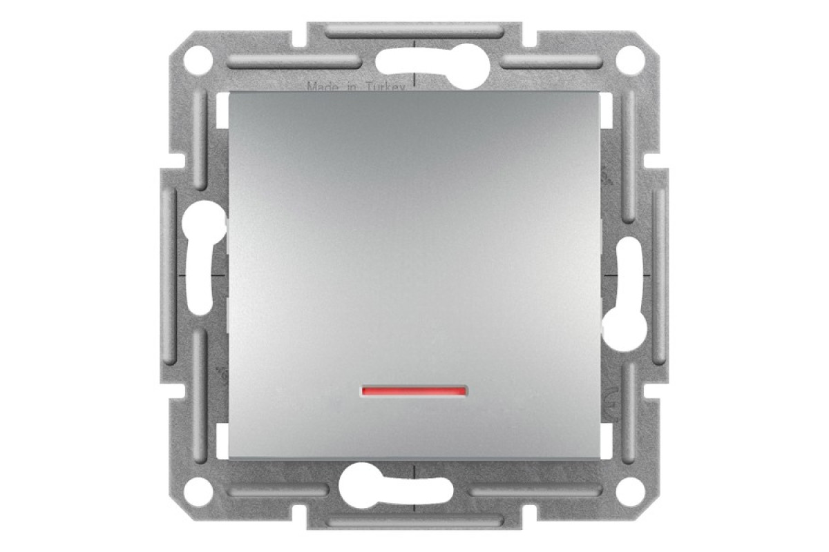 Кнопковий вимикач, з підсвіткою, Самозажимний, Asfora Алюміній