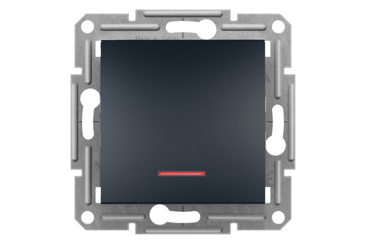 Кнопковий вимикач, з підсвіткою, Самозажимний, Asfora Антрацит