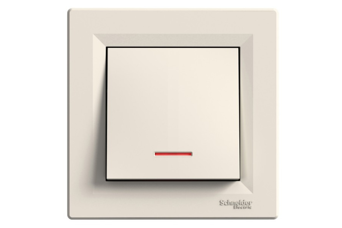 Кнопковий вимикач, з підсвіткою, Самозажимний, Крем Asfora