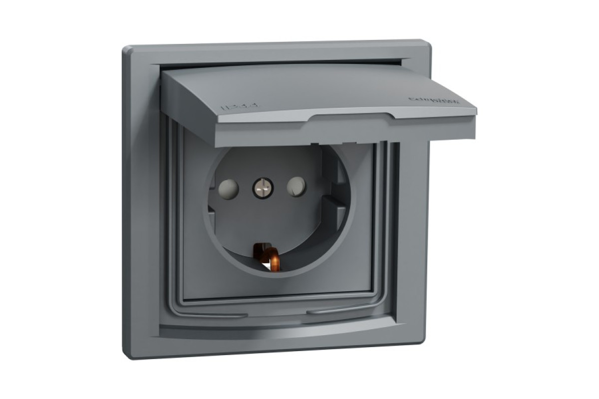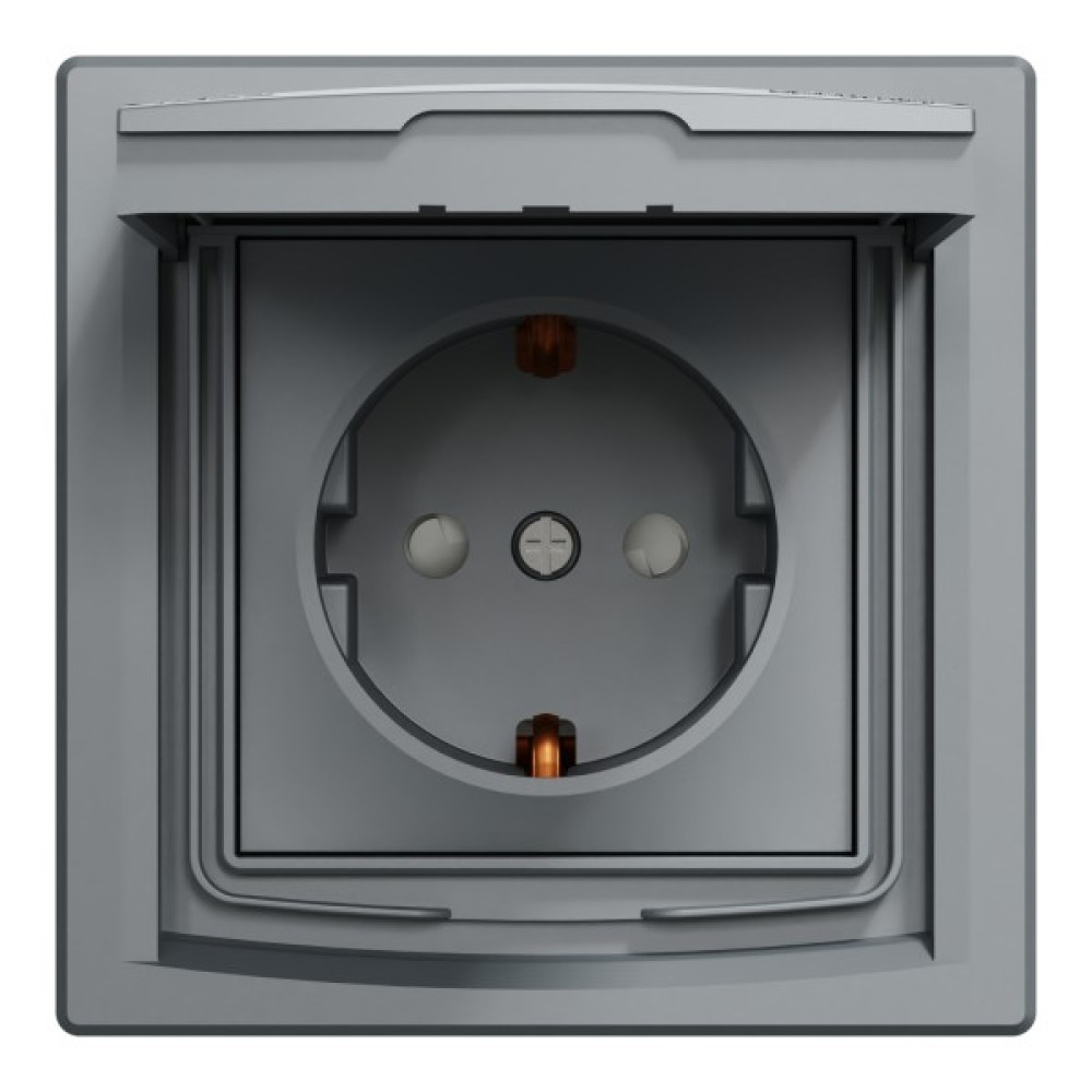 Розетка IP44 з кришкою, з заземленням, з захисними шторками, Сталь Asfora