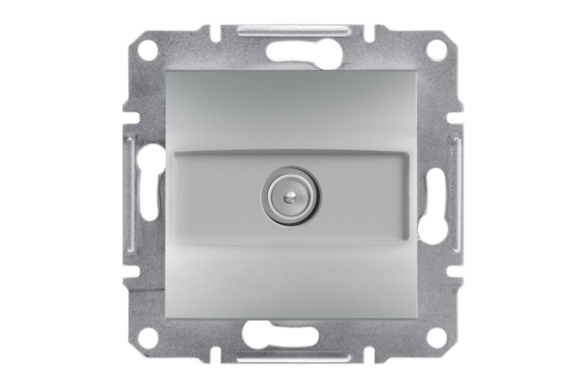 TV-розетка Schneider Electric Asfora EPH3200161 кольору алюміній - це готовий до встановлення виріб. TV-розетка – кінцева, а штекер типу тато IEC 9,52 мм. Спосіб кріплення - монтажні лапки. Розмір цієї TV-розетки становить 71 мм, 71 мм і 38 мм, з глибиною виступу 10 мм. Передбачено прихований монтаж. Глянцеве покриття робить її яскравою та привабливою. Клеми безгвинтові. Ступінь захисту IP20. Виготовлена з матеріалу ABS (акрилонітрил-бутадієн-стирол). Має мідний провідник. Крім того, вона має знак якості CE. Більше того, TV-розетка кваліфікується як екологічний продукт преміум-класу. Не містить ртуті. Крім того, TV-розетка спеціально розроблена для житлових та невеликих комерційних приміщень. Asfora - це серія електроустановчих виробів, включаючи електричні вимикачі, світлорегулятори, інформаційні та силові розетки, а також вимикачі для жалюзі. Витончений елегантний дизайн ідеально гармонує практично з будь-яким інтер’єром. Продукція Asfora приємна на дотик, як і на око, виготовлена з високоякісних матеріалів, які з часом не жовтіють.